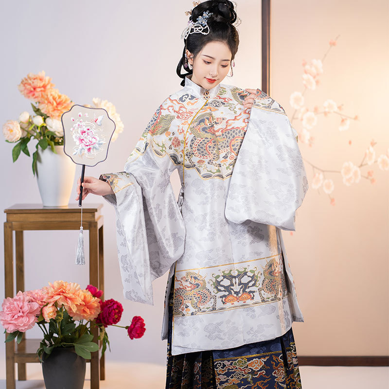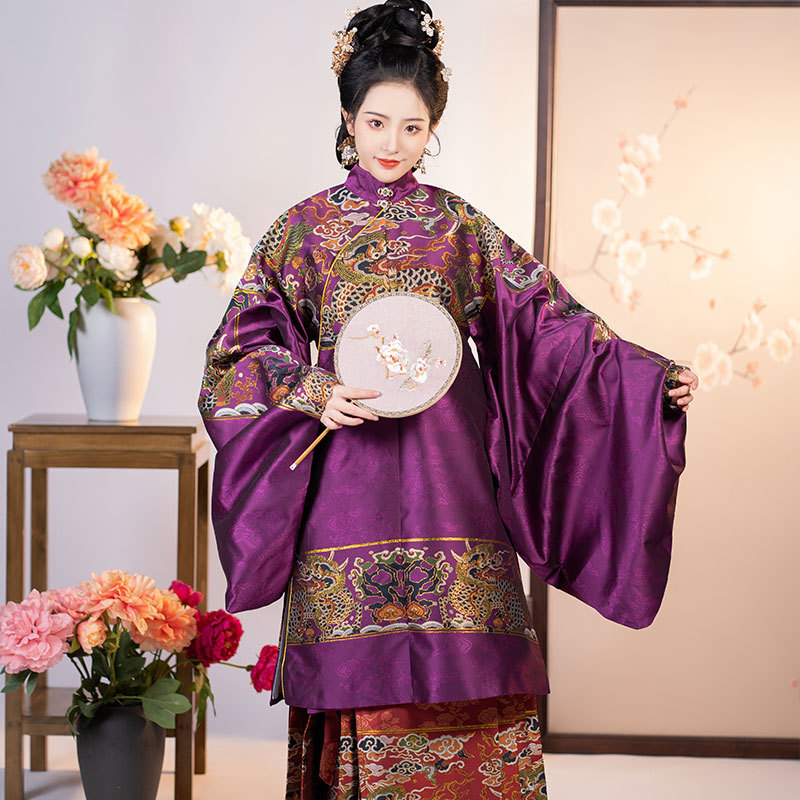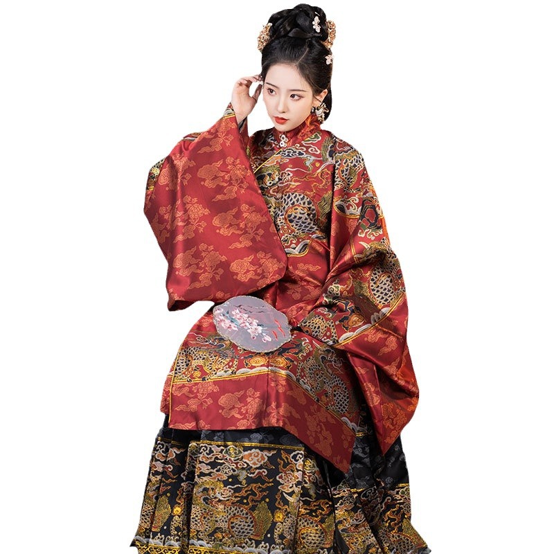 | nameOriginal | Original Hanfu Women's 2024 New Ming Style Vertical Collar Slant Breasted Long Coat Woven Gold Makeup Flower New Year Couple's Dress Wedding Dress Spring and Autumn |
