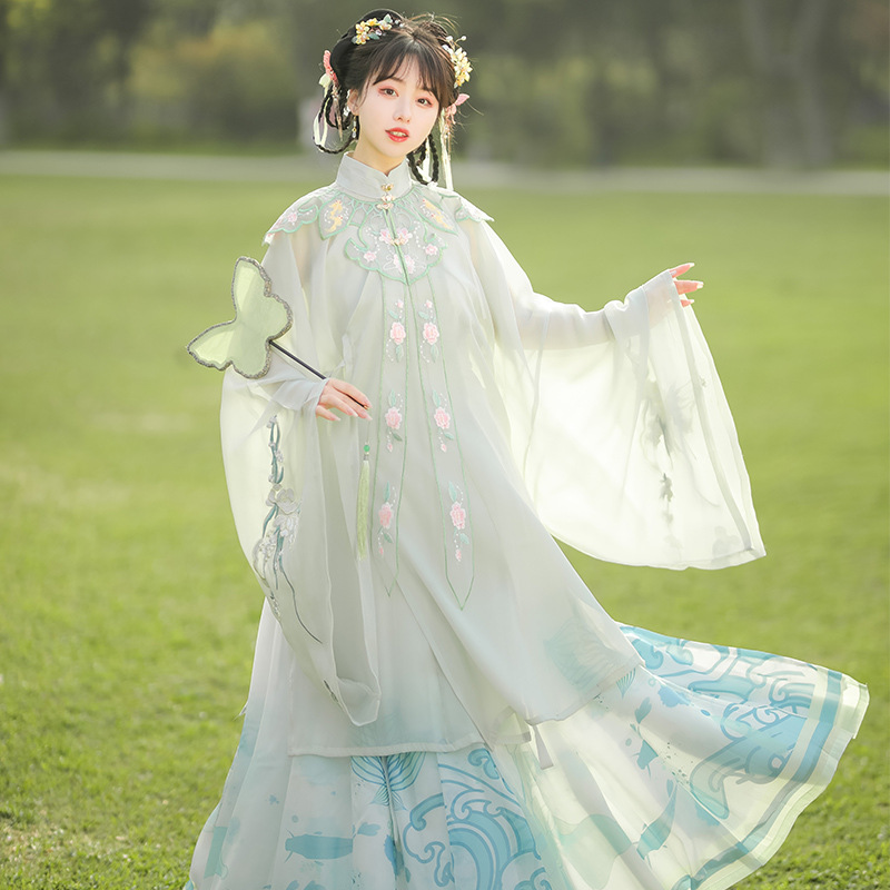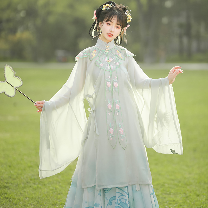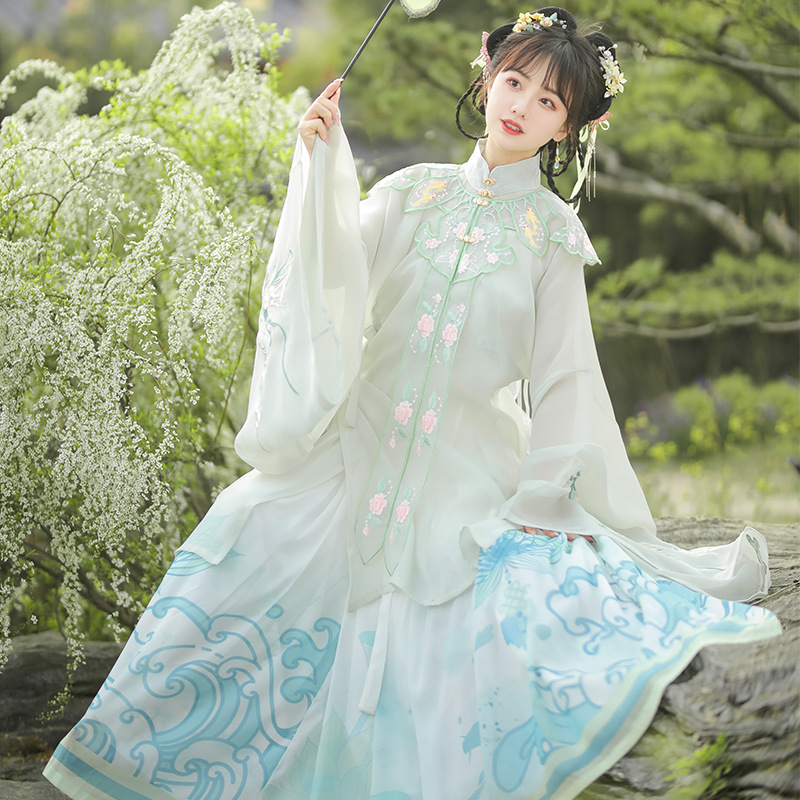 | nameOriginal | Original Hanfu Women's Chinese-style Ming-made cloud shoulder stand collar placket long shirt pleated skirt ancient costume fairy elegant spring and summer full set |