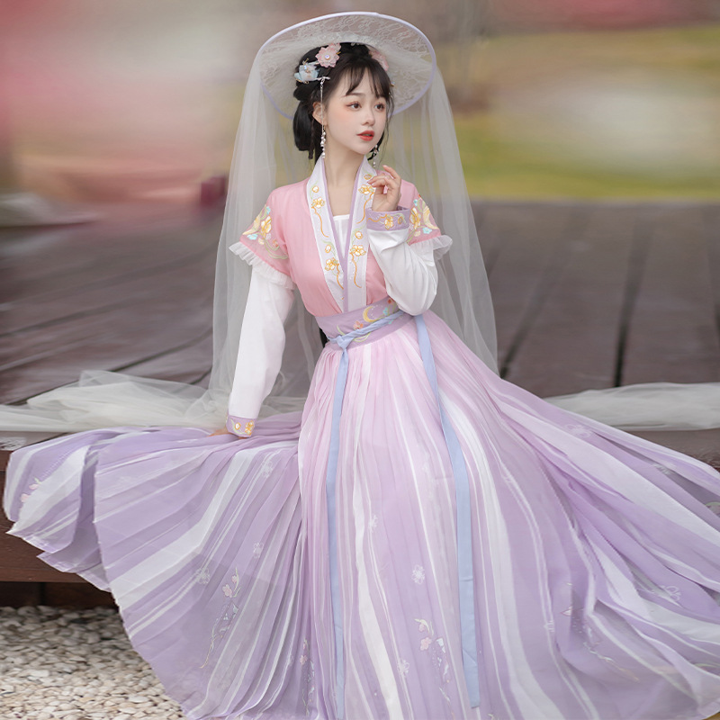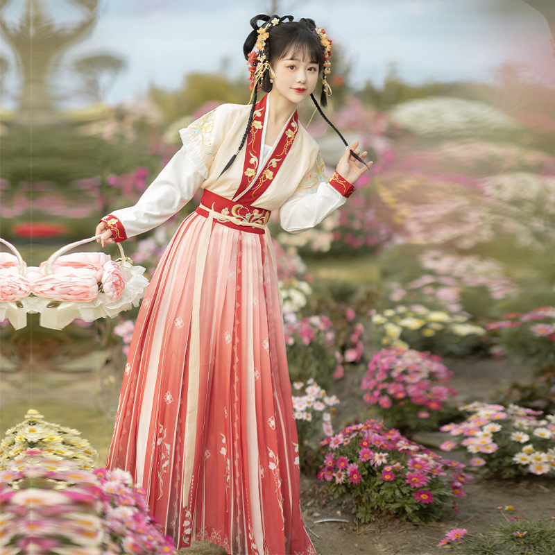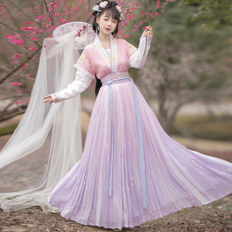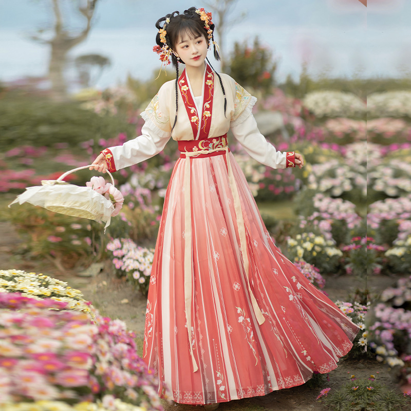 Original Hanfu Women's Chinese style Tang style raccoon round collar shirt waist spring and summer small fairy slimming Flower Shadow