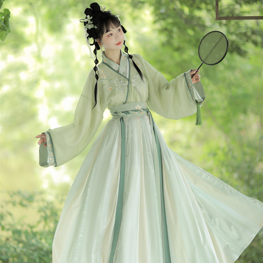 Original Hanfu women’s genuine goods Super fairy Jin one-piece waist suit Spring and Autumn New Chinese style Lingbo fairy