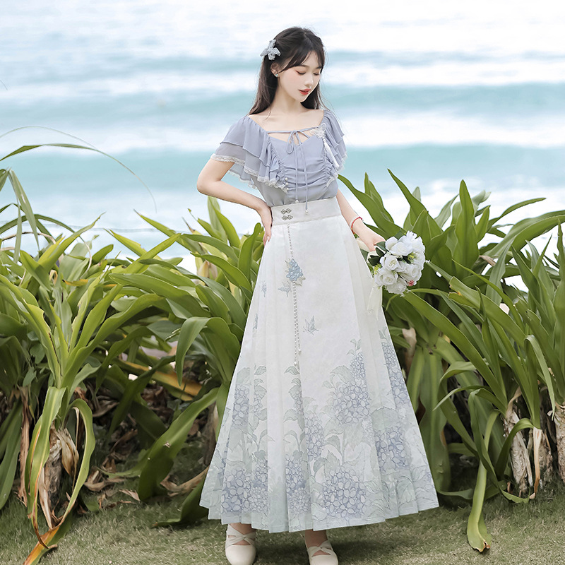 | nameOriginal | Original hydrangea letter Han clothing Women's Chinese style improved Han element top skirt suit 9059 |