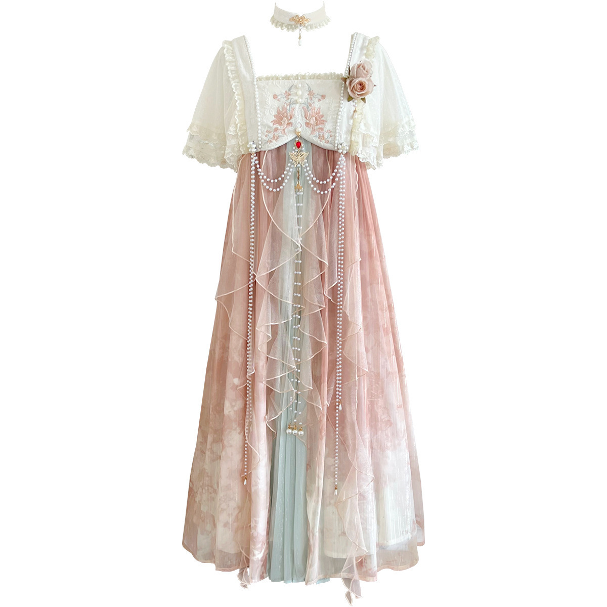 Original mountain and river dream Hanfu Women's Chinese style improved daily Han element coat suspender skirt suit spring and summer 6793