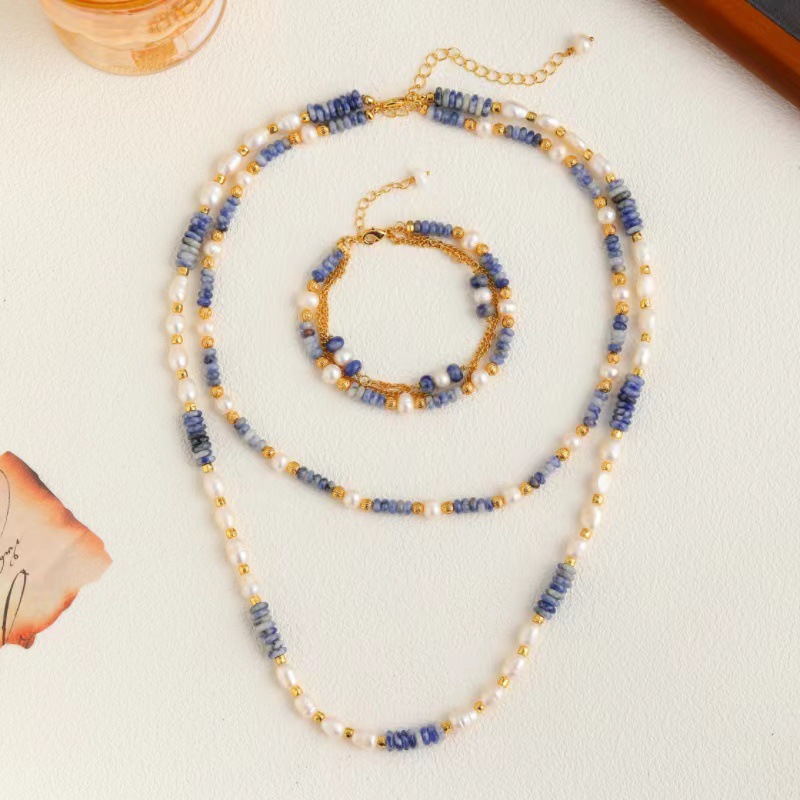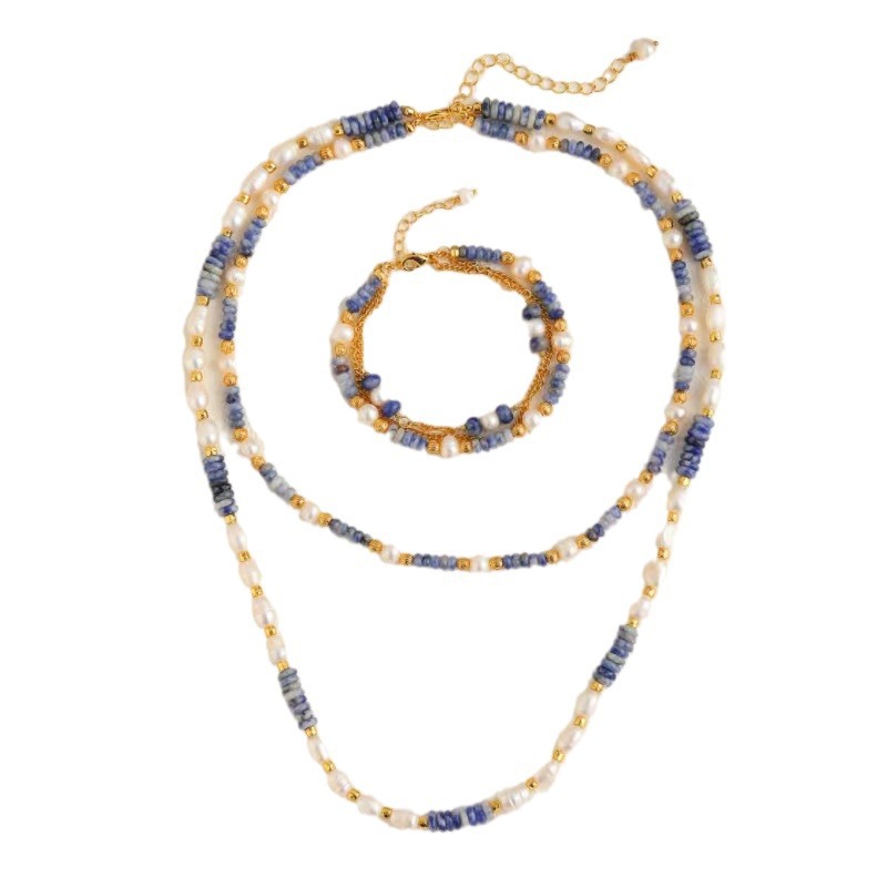 | nameOriginal | Original New Chinese Style Blue National Style Handmade Beaded Double Layer Necklace Bracelet Gravel Freshwater Pearl Fresh suit |