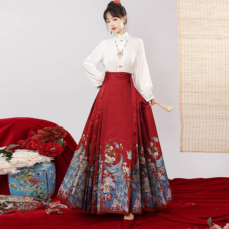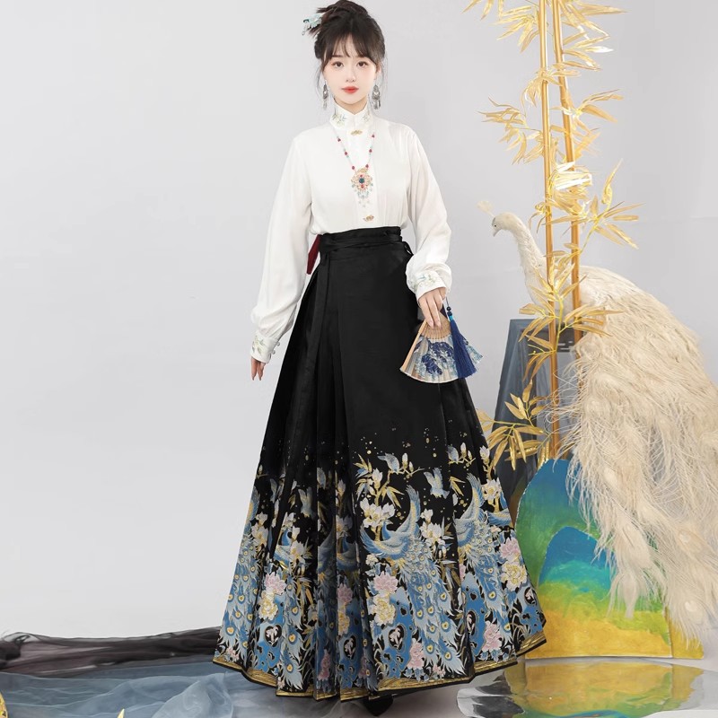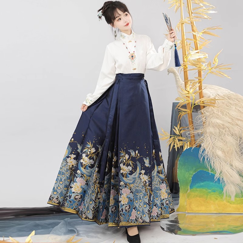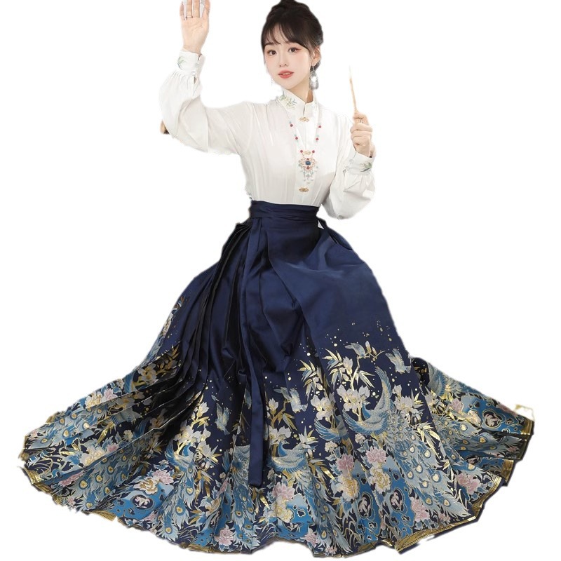 Original New Chinese style Ming-made woven gold makeup flower horse face skirt Hanfu Women’s Chinese style Han element improved daily commuting suit