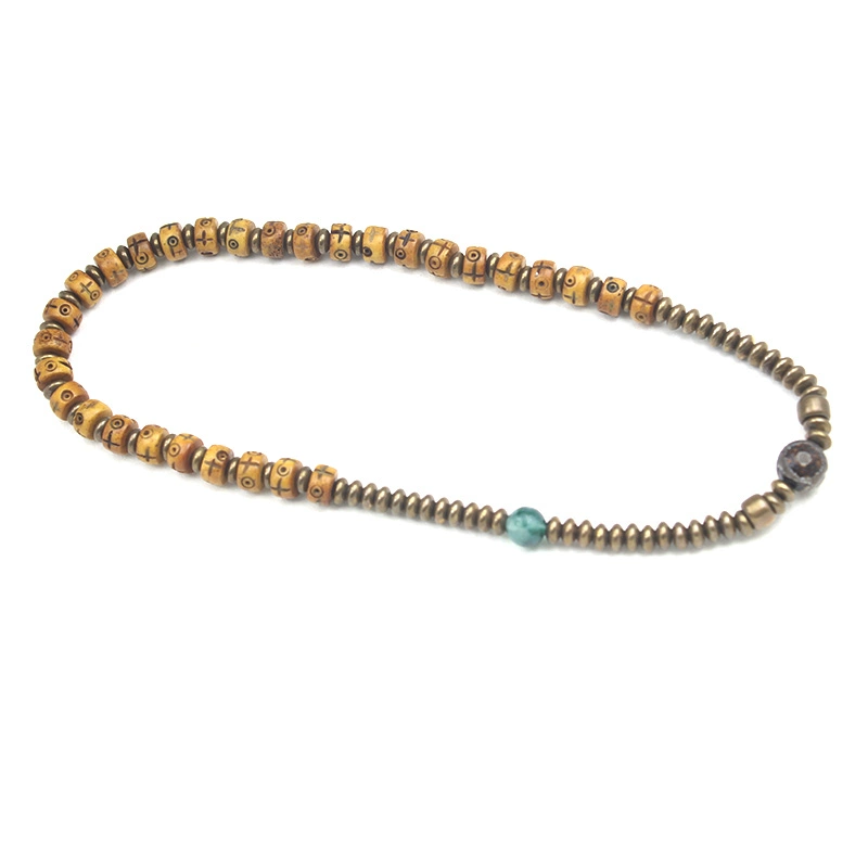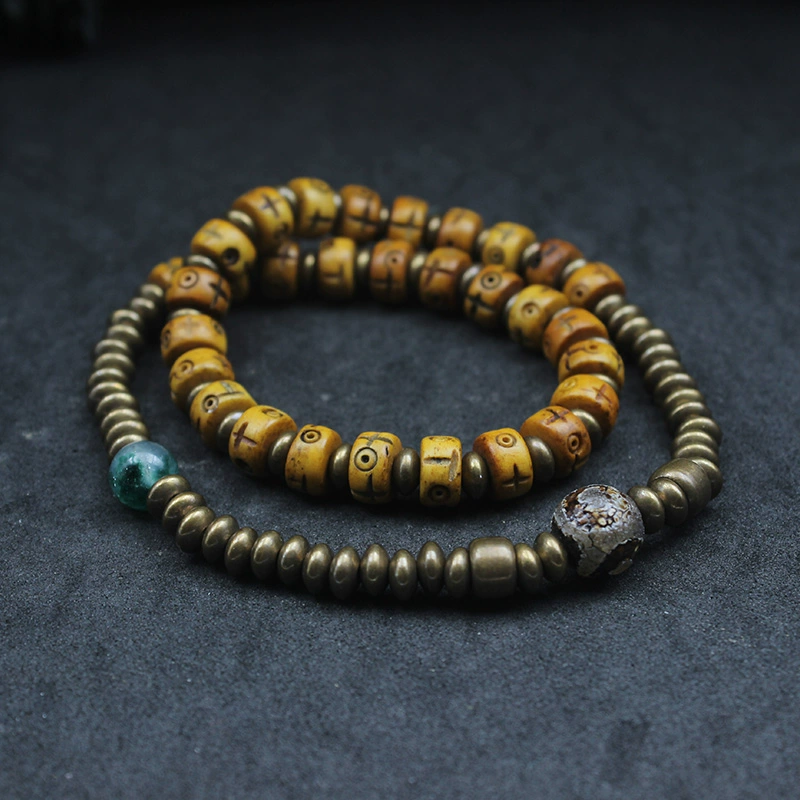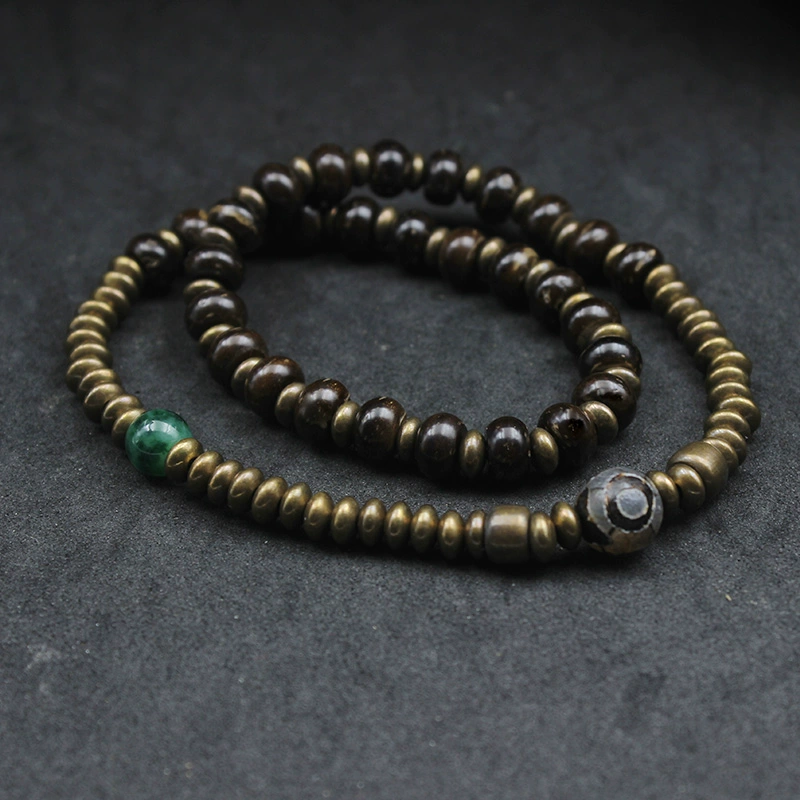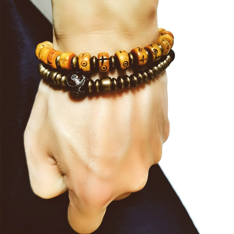 Original niche design retro bronze beef bone wood bead double -layer bracelet female personality casual wild coconut shell bracelet man