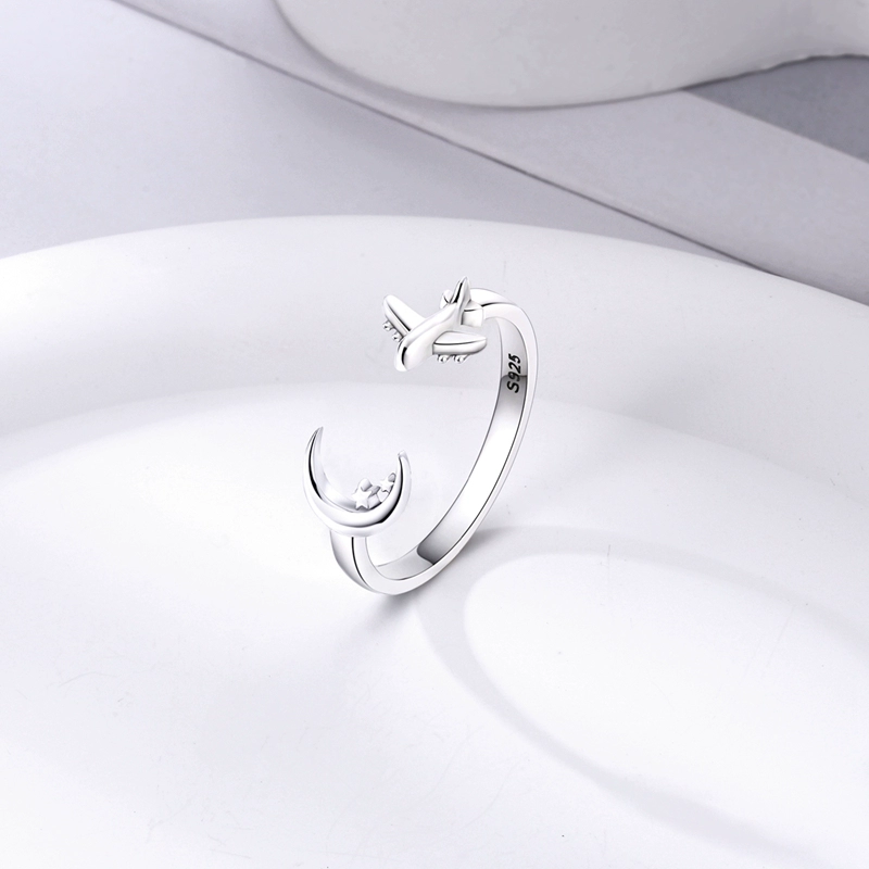 Original niche design ring Brilliant S925 sterling silver hollow star heart-shaped pavé colored zirconium double layer star and moon ring