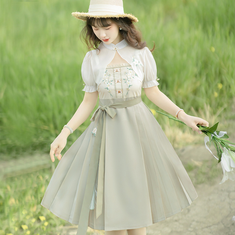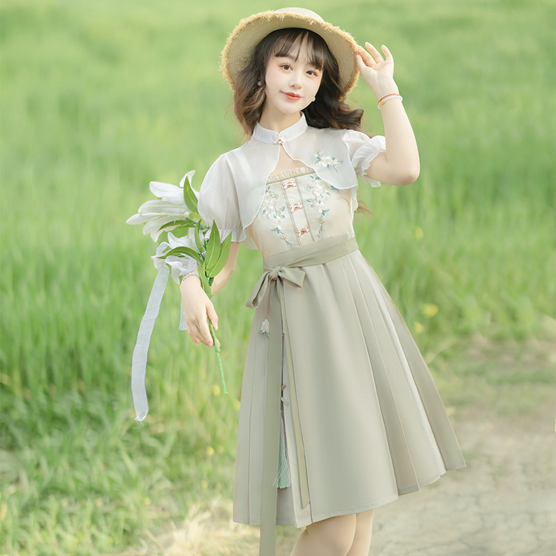 | nameOriginal | Original pear fragrance Hanfu Women's Chinese style Daily Han element outer wear suspender skirt suit spring and autumn 8608 |
