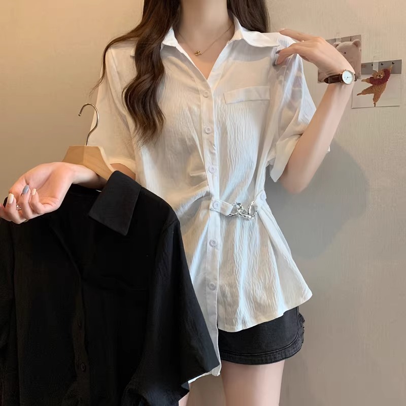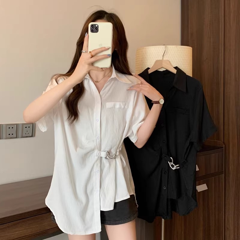 | nameOriginal | [Original] plus size Women's 2024 Summer Temperament Short-sleeved Shirt Design Irregular Giant Slim Top |