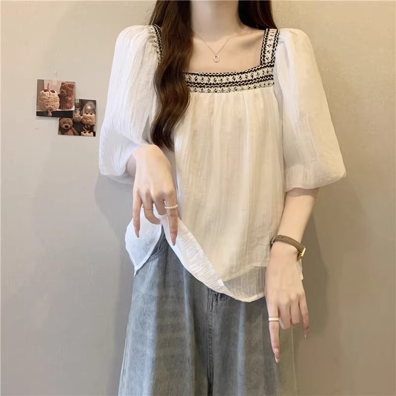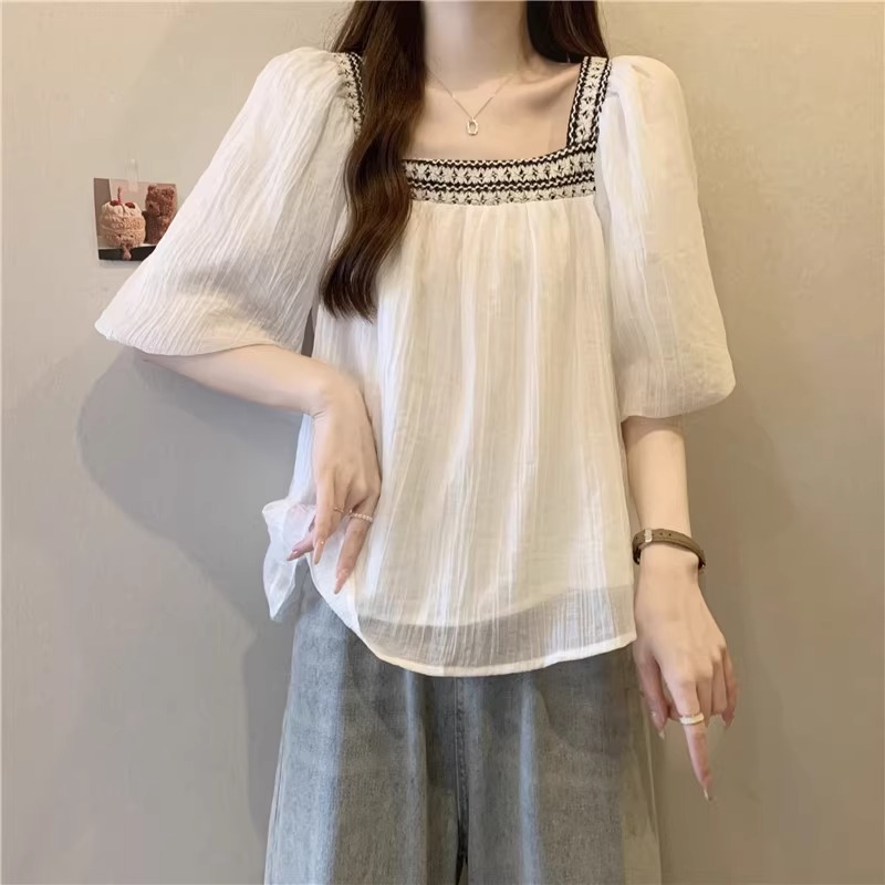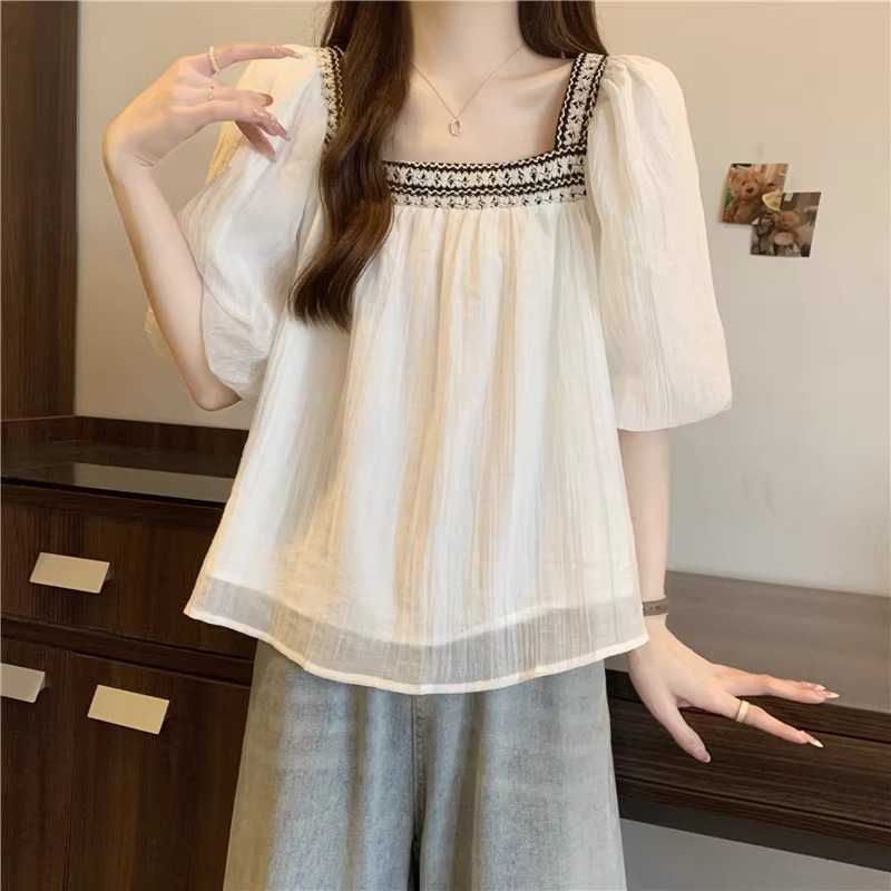 | nameOriginal | [Original] plus size Women's Wear Chinese Style Gentle Doll Shirt Square Neck Short Sleeve chubby girl Belly Covering Slim Top |
