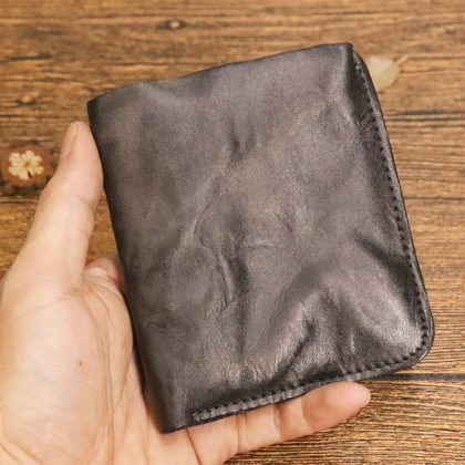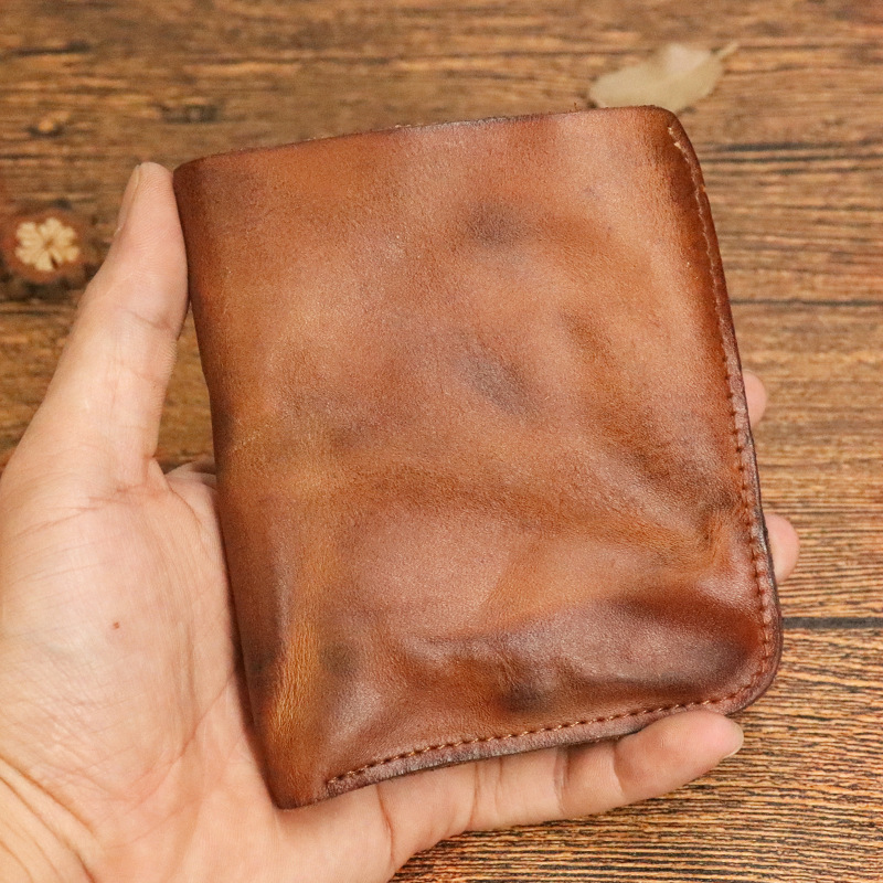 Original pure leather wallet vegetable tanned leather wallet vintage hand-brushed distressed pleated multi-card zipper wallet wholesale