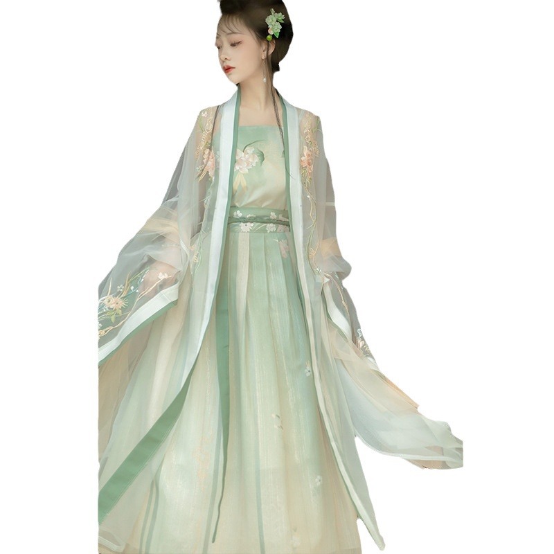 | nameOriginal | Original Qing Huan Song-made Hanfu Gradient Embroidered Pair-breasted Big Sleeve Shirt with Sling One-piece Waist Pleated Skirt for Women in Spring and Summer |