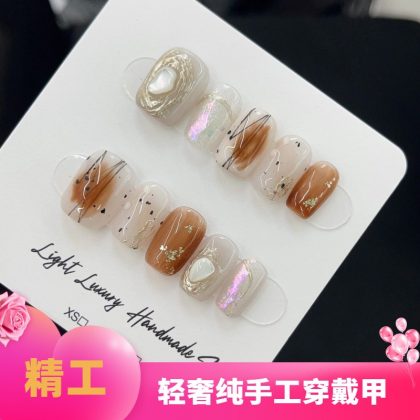 | nameOriginal | [Original real shot] Maillard caramel amber hand-worn nail piece light luxury pure manual high-quality control nail |