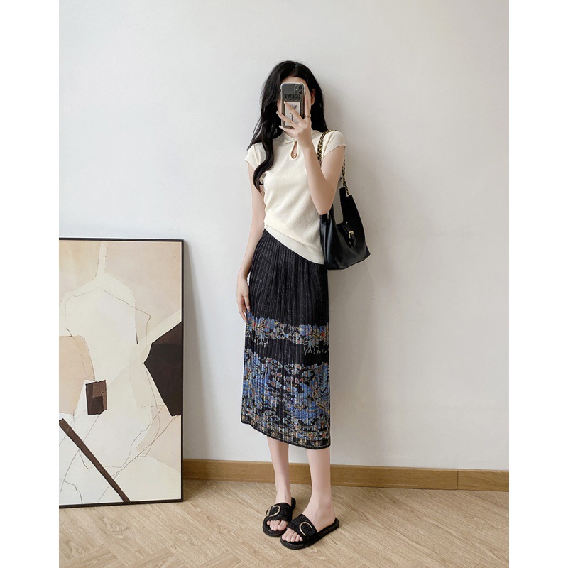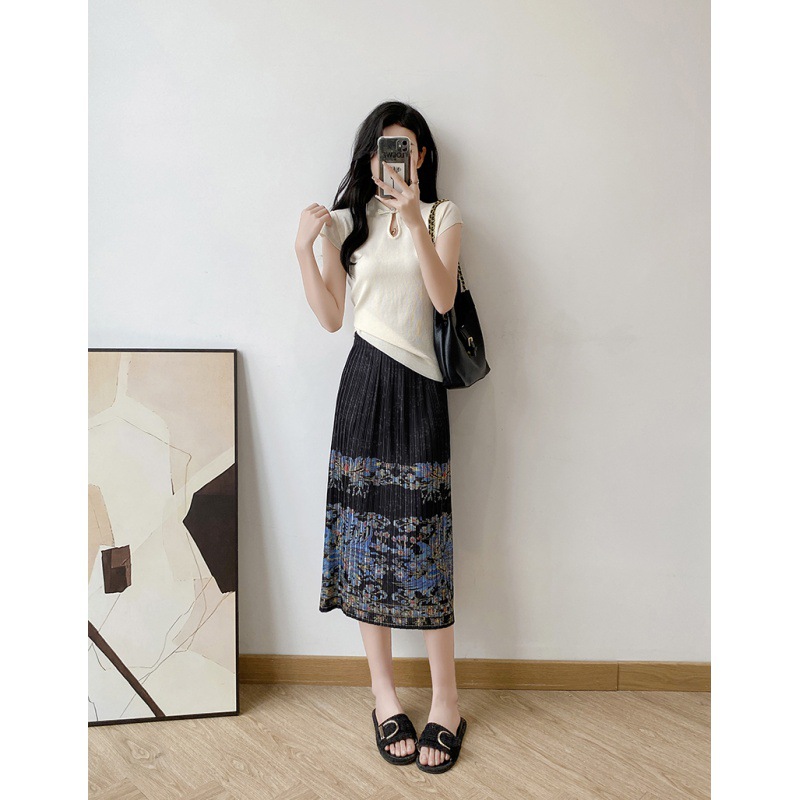 | nameOriginal | Original Real Shot New Chinese Zen Button Knitted Top Phoenix Yu Fei Diocui Printed Miyake Pleated Skirt |