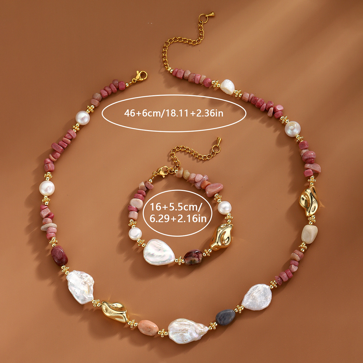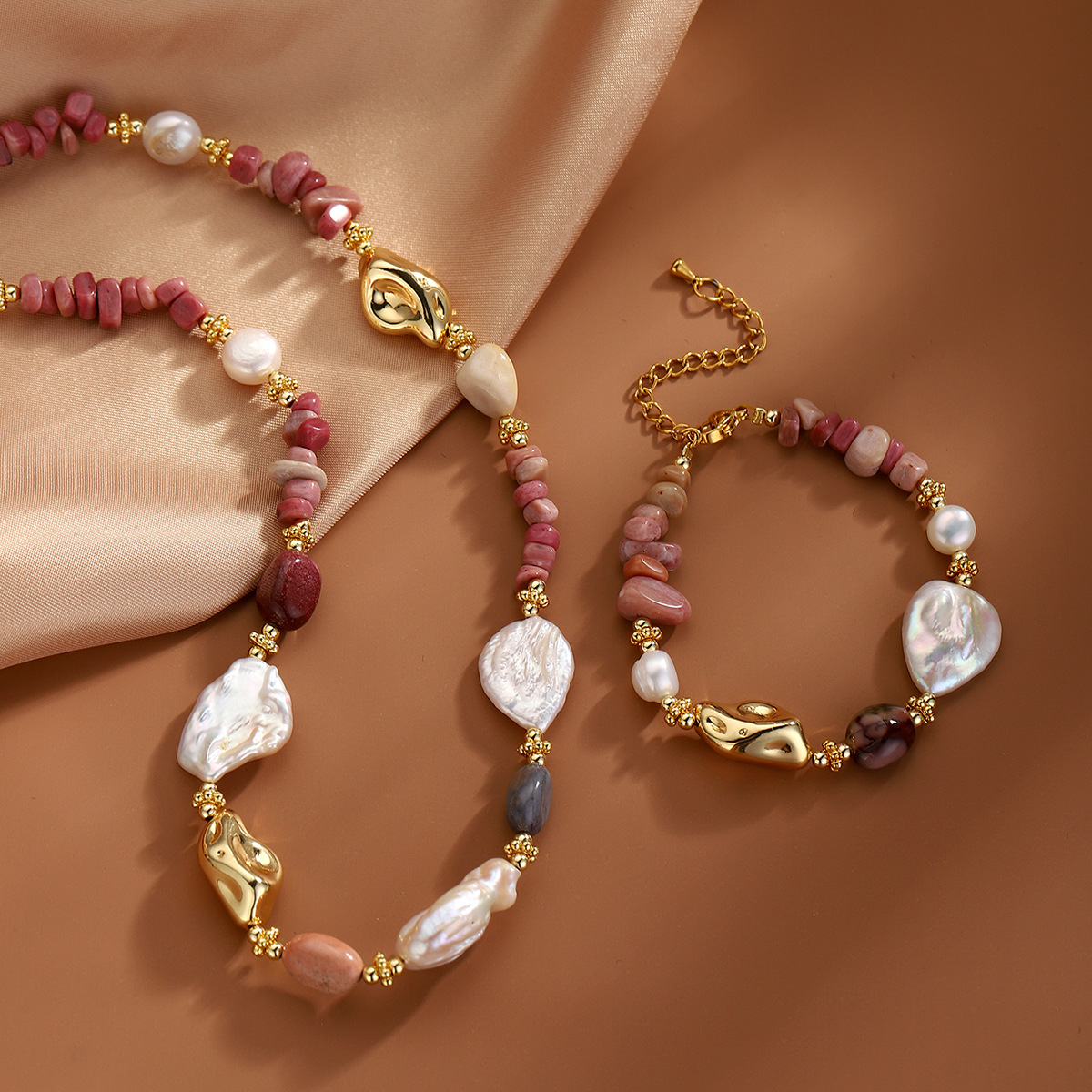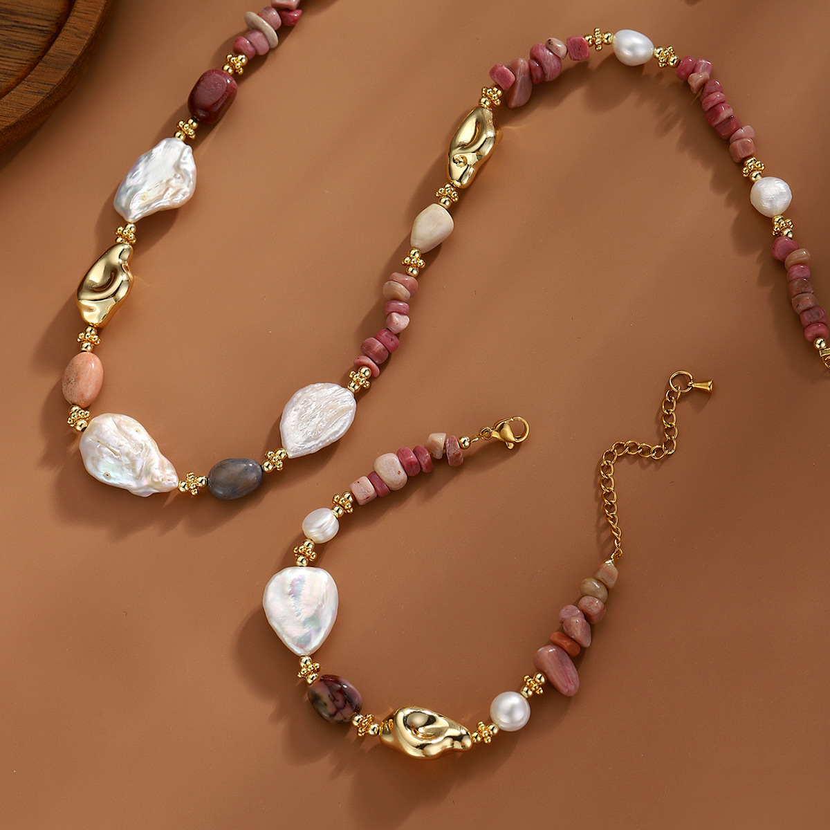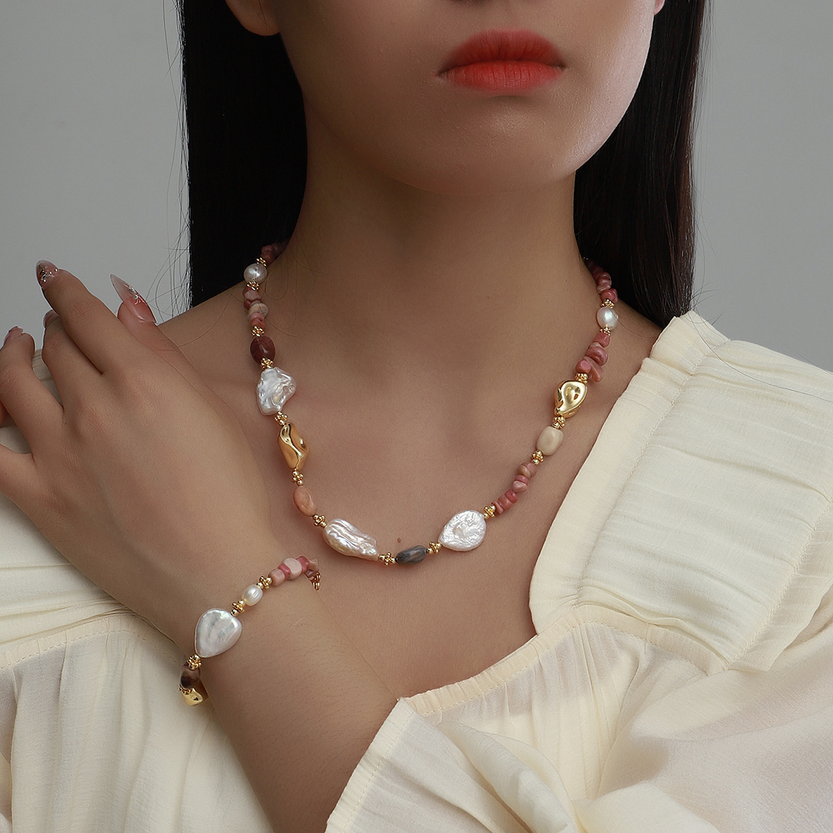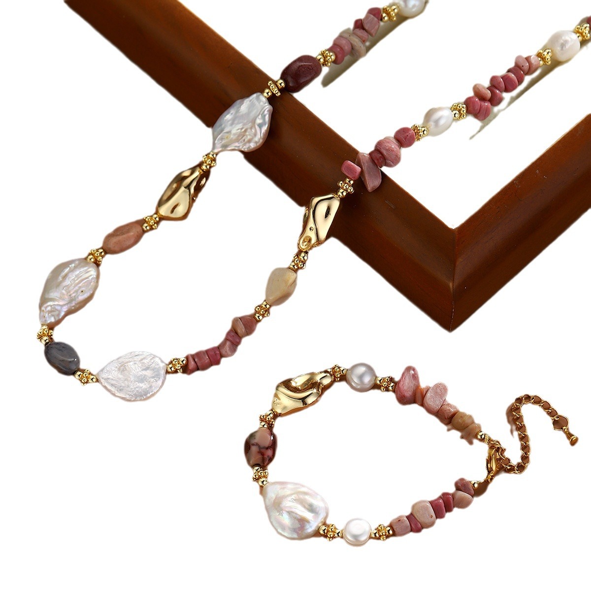 Original Rose Stone Baroque Freshwater Pearl Necklace Light Luxury Jewelry Niche All-match Elegant Retro Set Chain