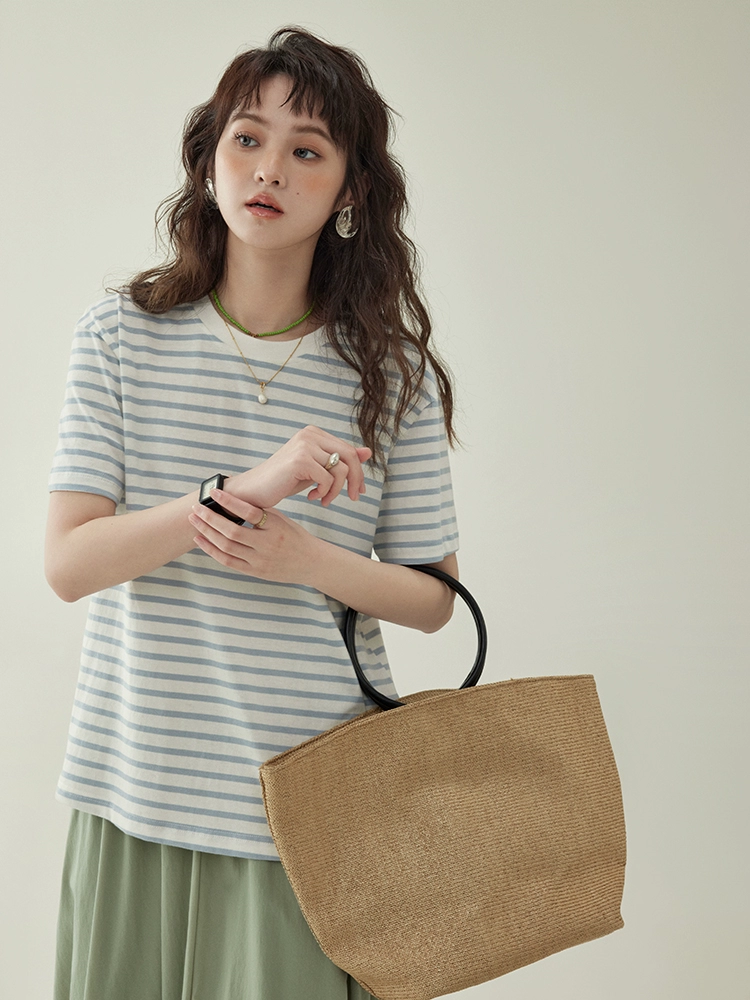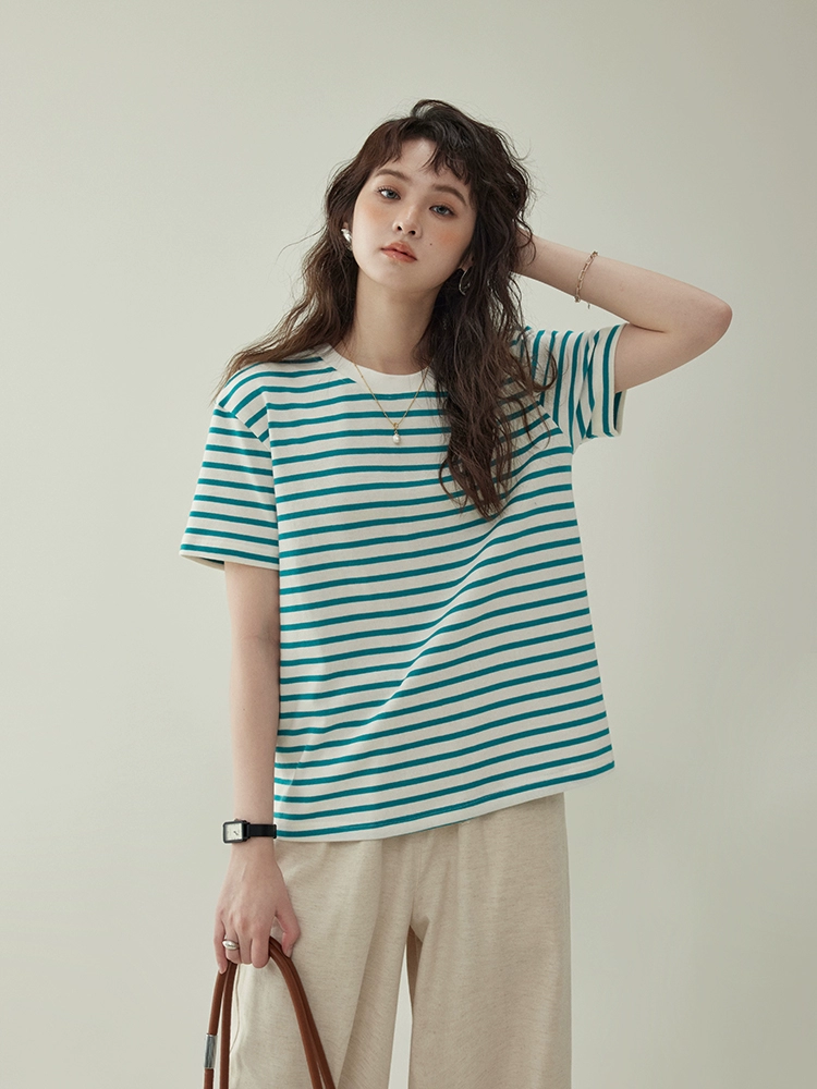 | nameOriginal | Original round neck loose contrast striped summer short sleeves |