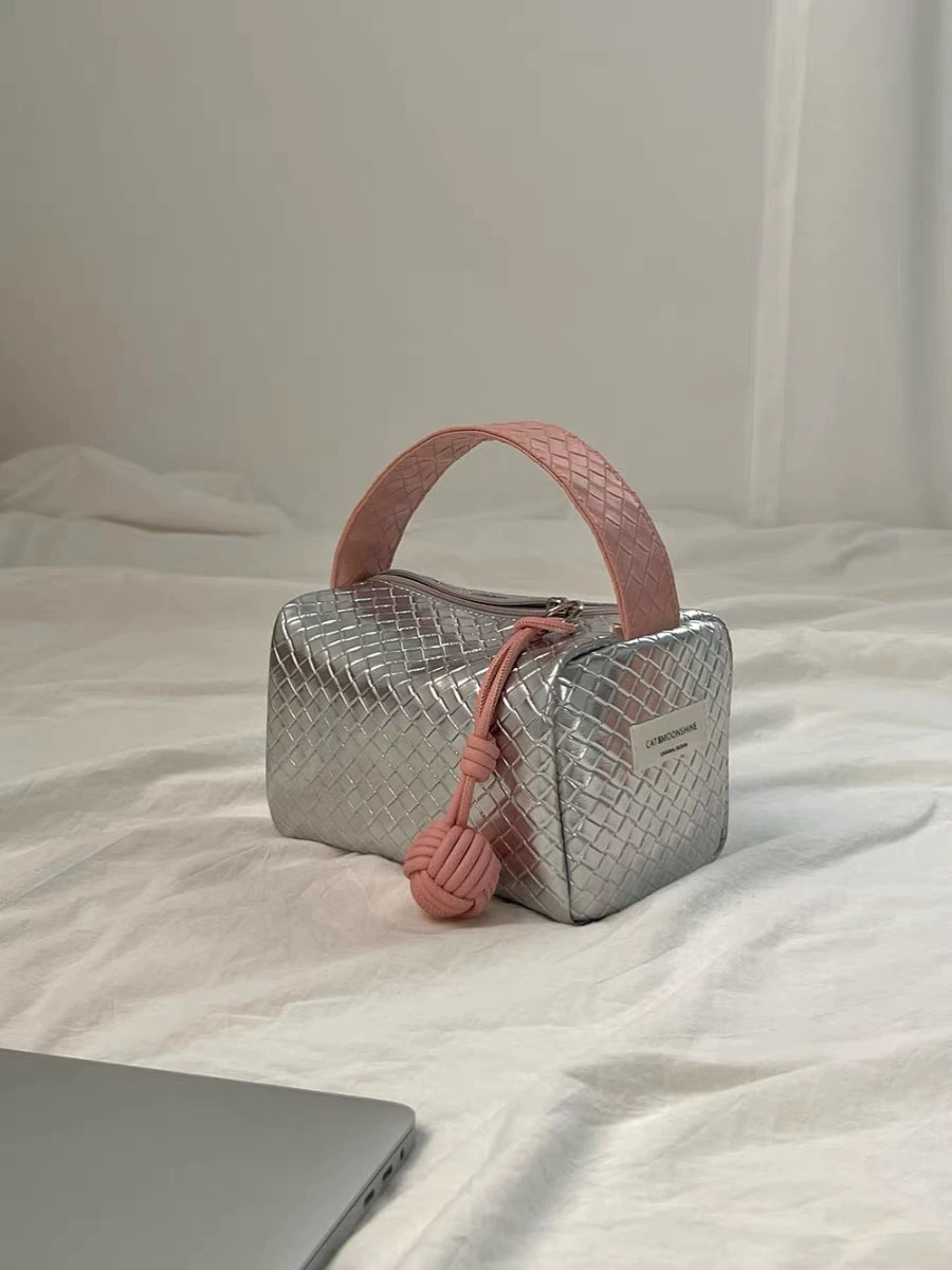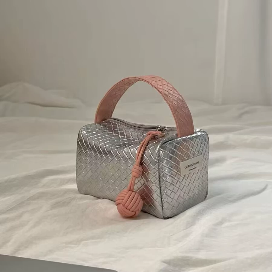 | nameOriginal | Original silver and pink color-blocked woven pattern portable handbag  |