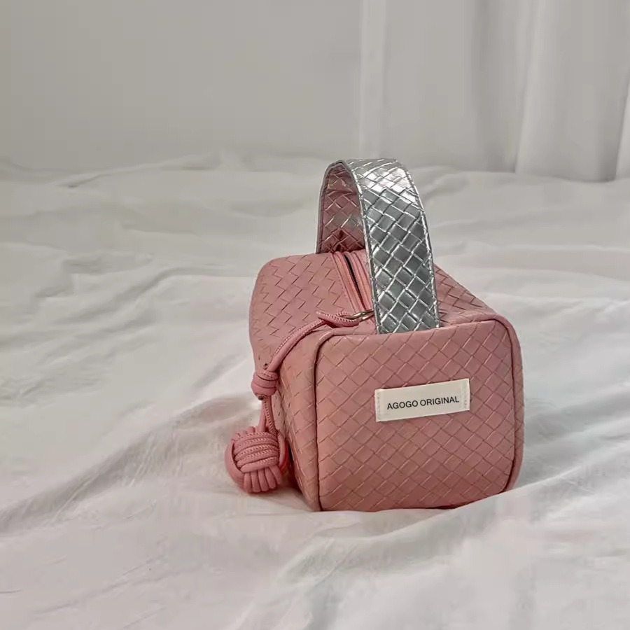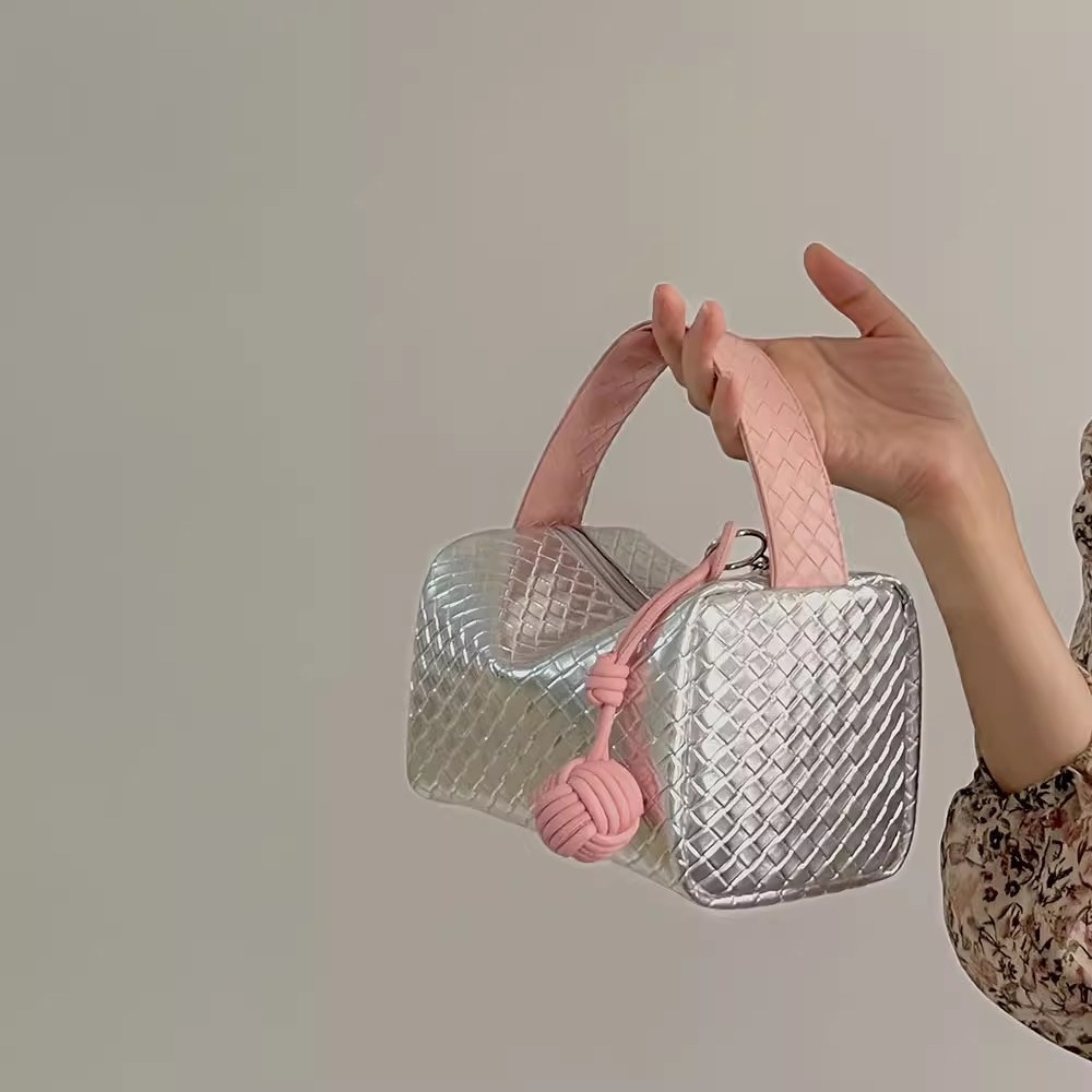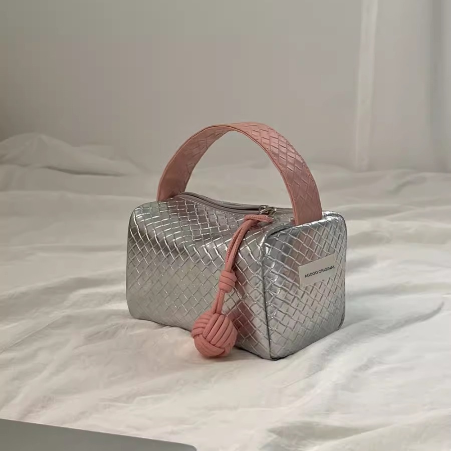 | nameOriginal | Original silver powder color matching woven pattern pillow new hand bag small bag portable cosmetic bag storage bag finishing bag |