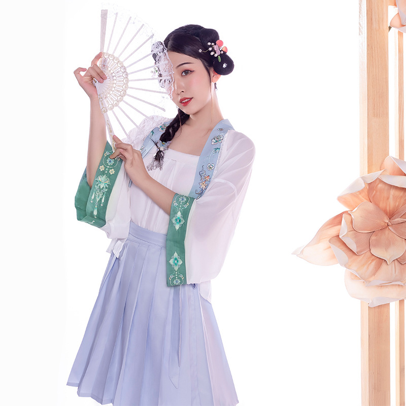 | nameOriginal | Original Song-made Short Hanfu Women's [Jade Cicada] Han-element Embroidered Pair Top Pleated Skirt Three-piece Set Summer |