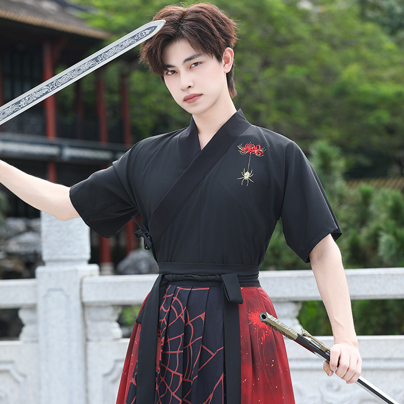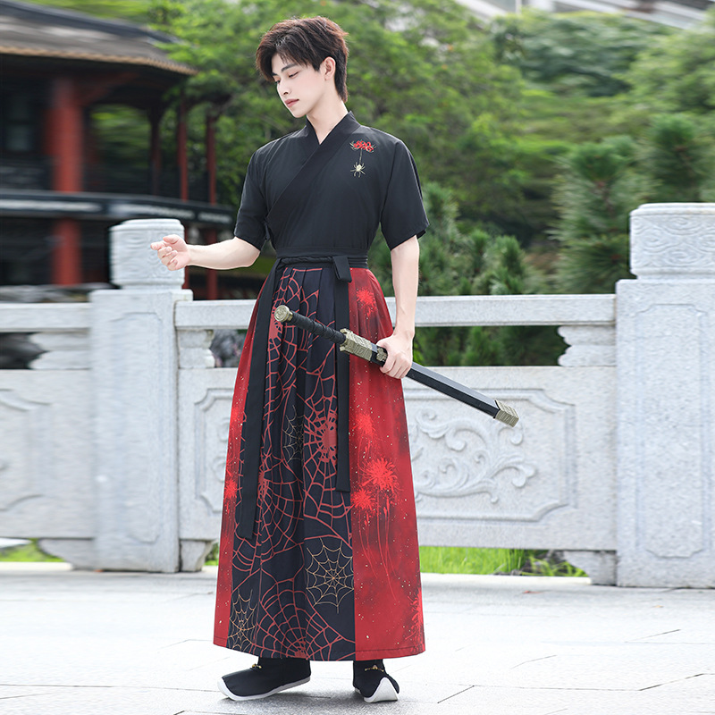 | nameOriginal | Original spider silk Chinese style men's wear chivalrous plus size antique short sleeve Hanfu embroidery student Han element suit |