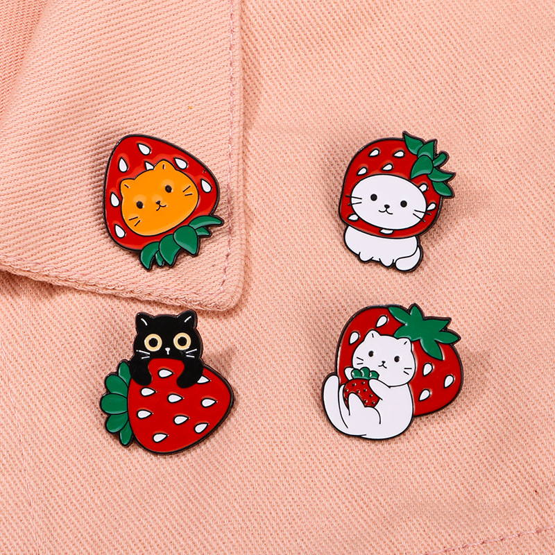 | nameOriginal | Original Strawberry Cat Cartoon Cute Brooch Fixed Adjusting Clothes Decorations Fruit Small Animal Alloy Badge |