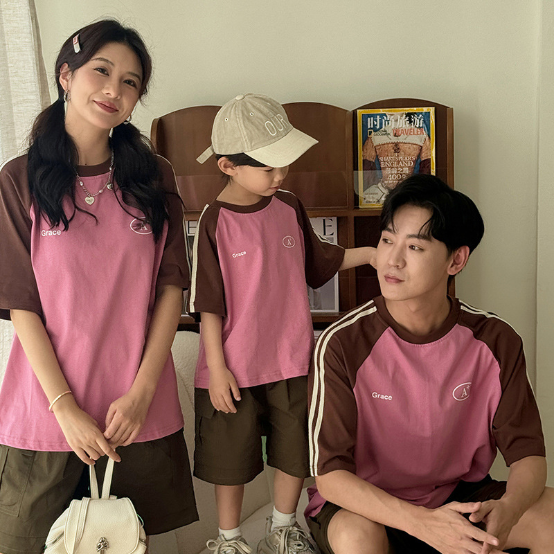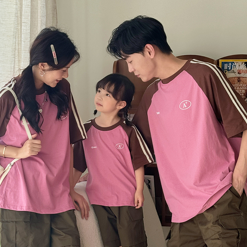| nameOriginal | Original summer new style color matching raglan sleeve short sleeve parent-child wear American retro couple half sleeve Western style family wear |