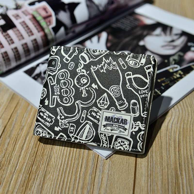 | nameOriginal | Original trendy brand creative short wallet male teenagers graffiti horizontal wallet trend Korean version PU student wallet thin |
