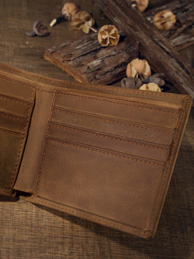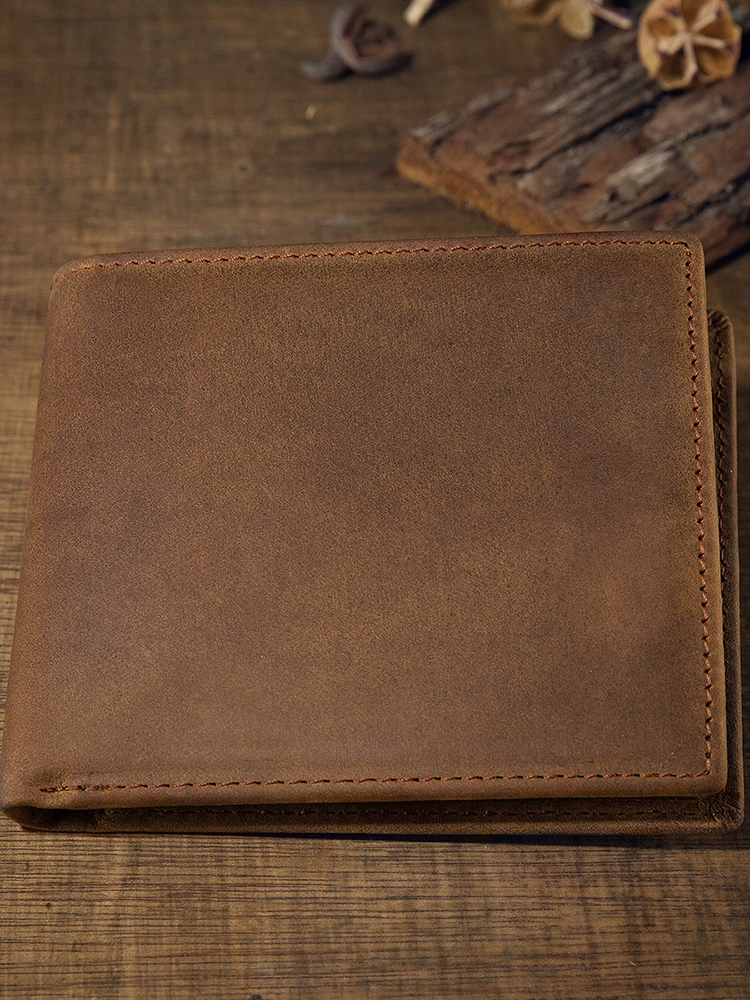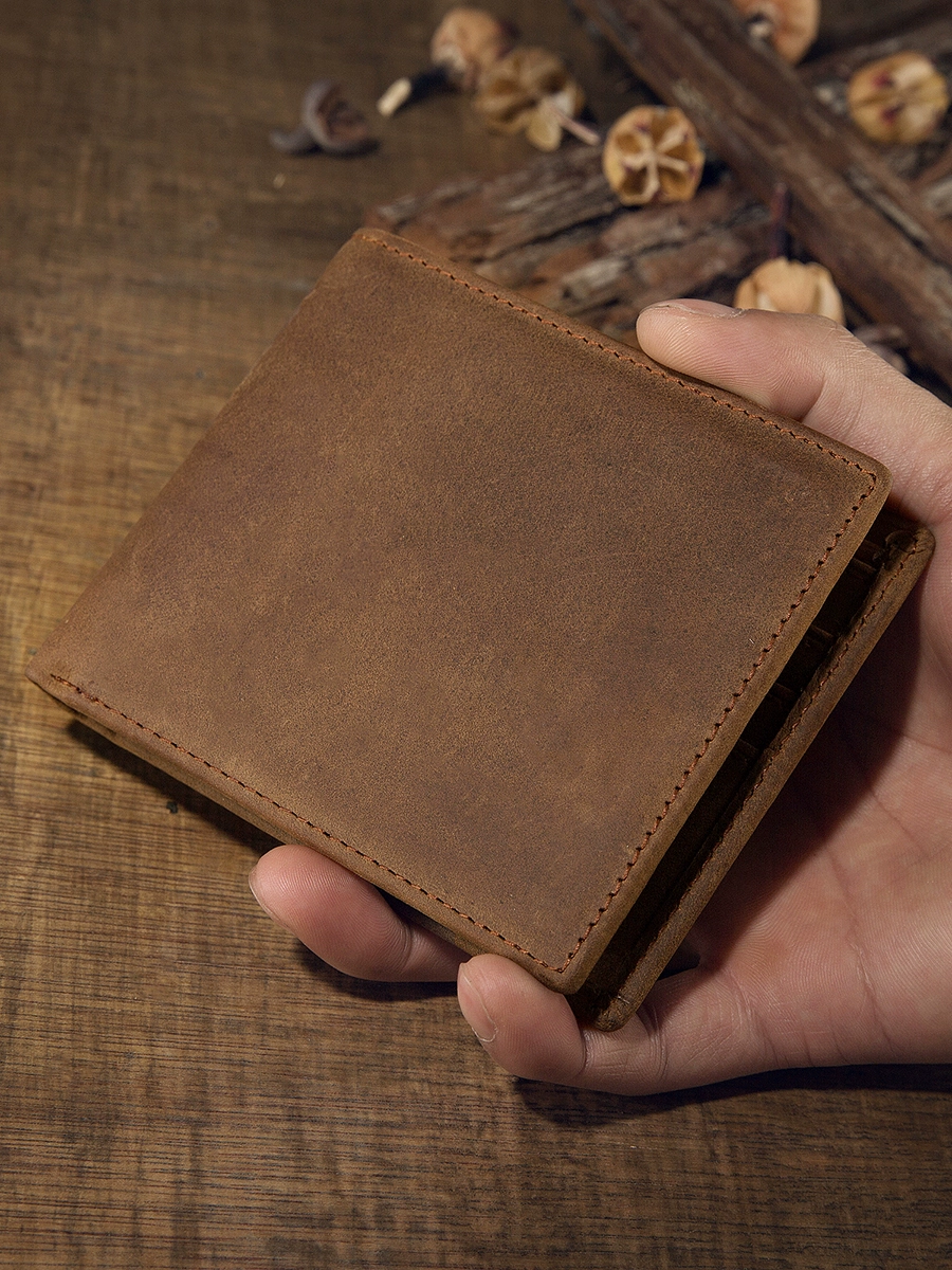 Original wallet men's short genuine leather horizontal casual wallet cowhide simple and thin Japanese and Korean personalized crazy horse leather wallet