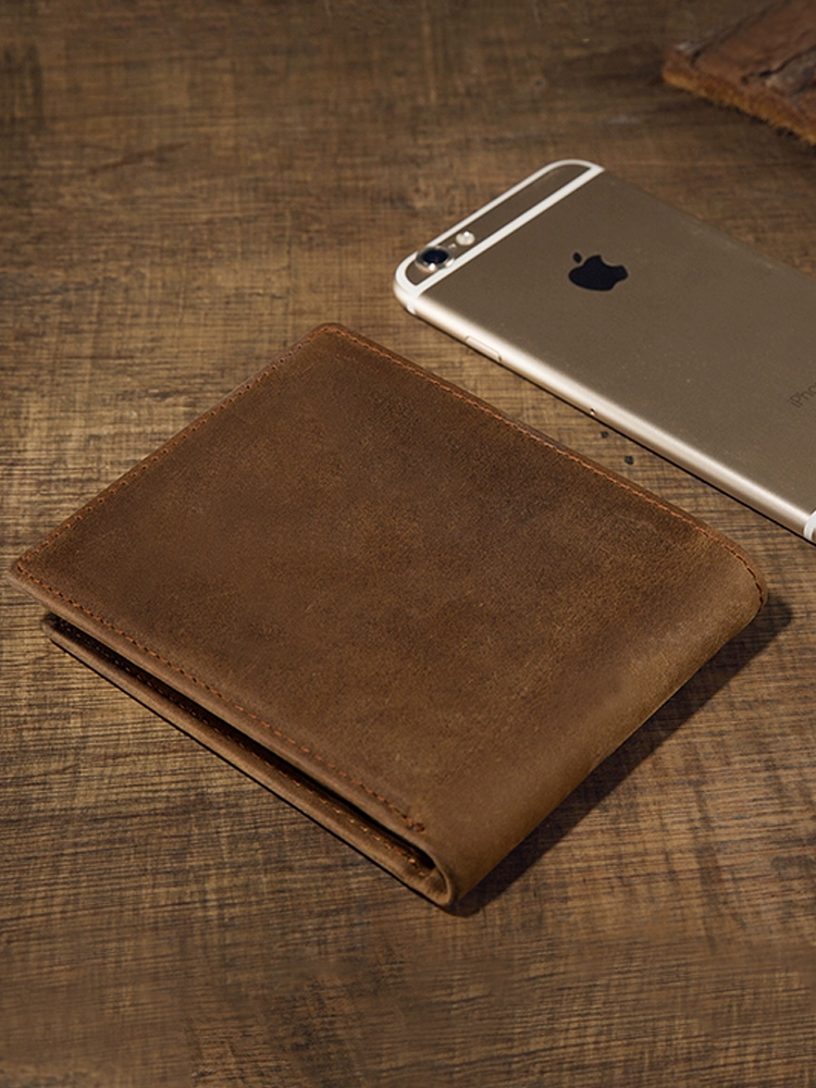 Original wallet men’s short genuine leather horizontal casual wallet cowhide simple and thin Japanese and Korean personalized crazy horse leather wallet