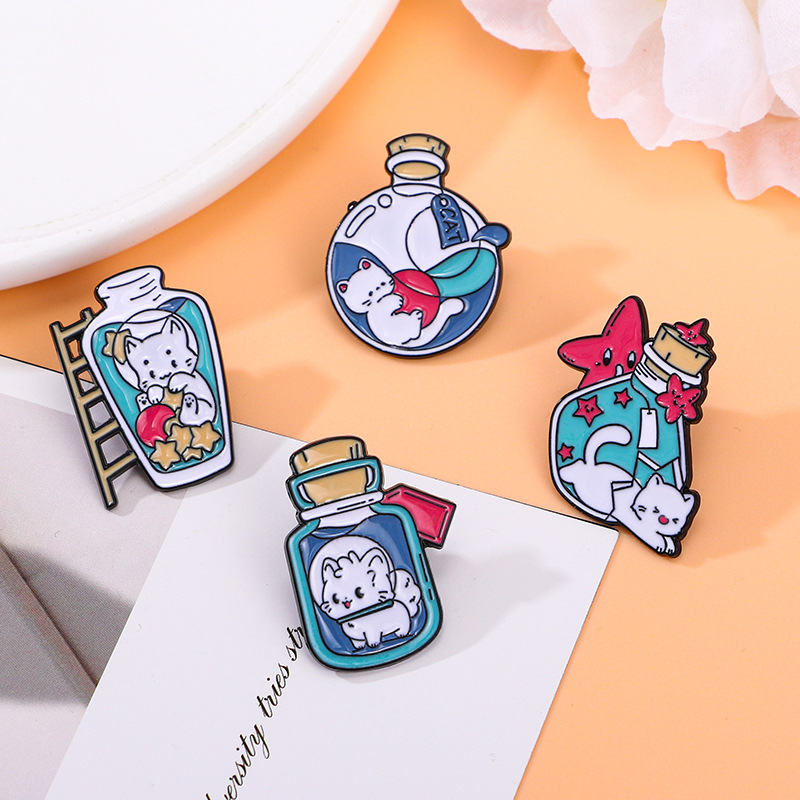 | nameOriginal | Original water bottle drifting bottle cat cartoon brooch cute white cat sweet student schoolbag decorations exquisite badge |