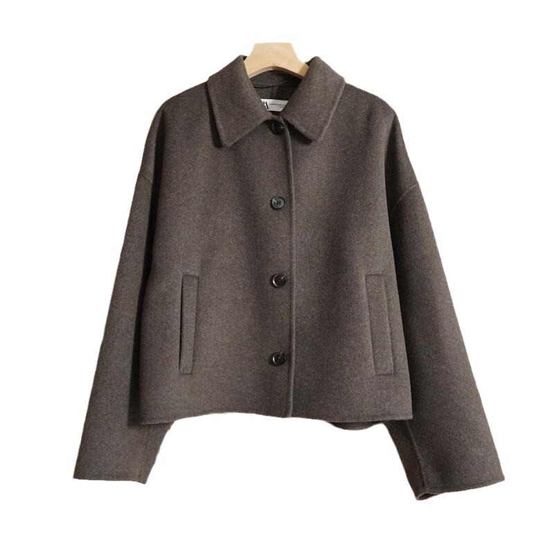 | nameOriginal | Original-women's lapel 7522/253 dark coffee brown loose double-sided woolen short coat new autumn and winter |