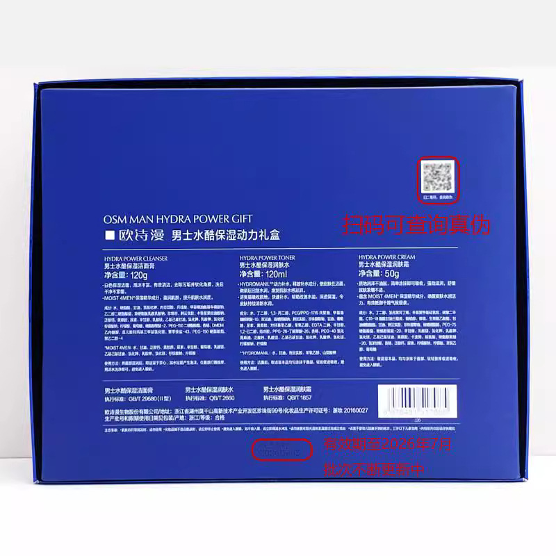 OSM oushiman men's water cool moisturizing power gift box suit hydrating Moisturizing Lotion Skin Care cream set
