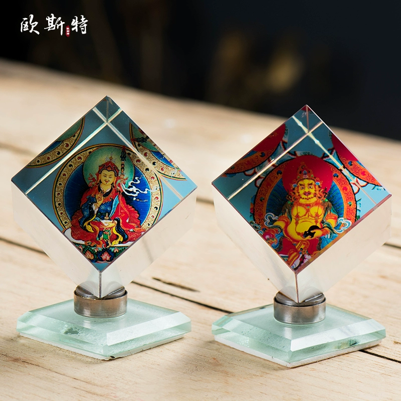 Oster Buddha Statue Ornaments Tibetan Ethnic Style Artificial Glass God of Wealth Tara and Master Lotus Thangka Buddha Statue Car Ornaments