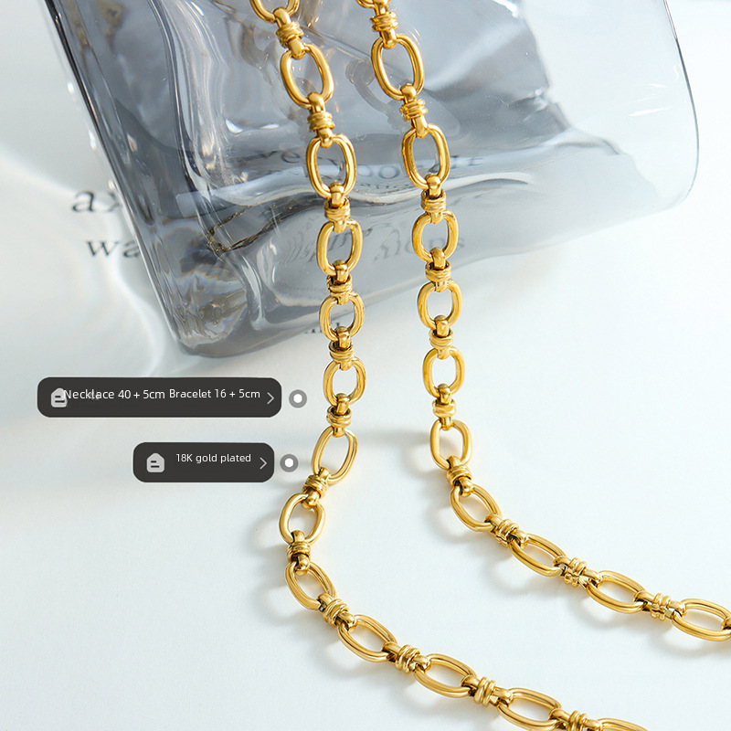 | nameOriginal | Ou Mei Su Chain Link Rough Chain Joker Necklace Bracelet Titanium Steel Plated 18K Gold Hip Hop Fashion Jewelry Set |