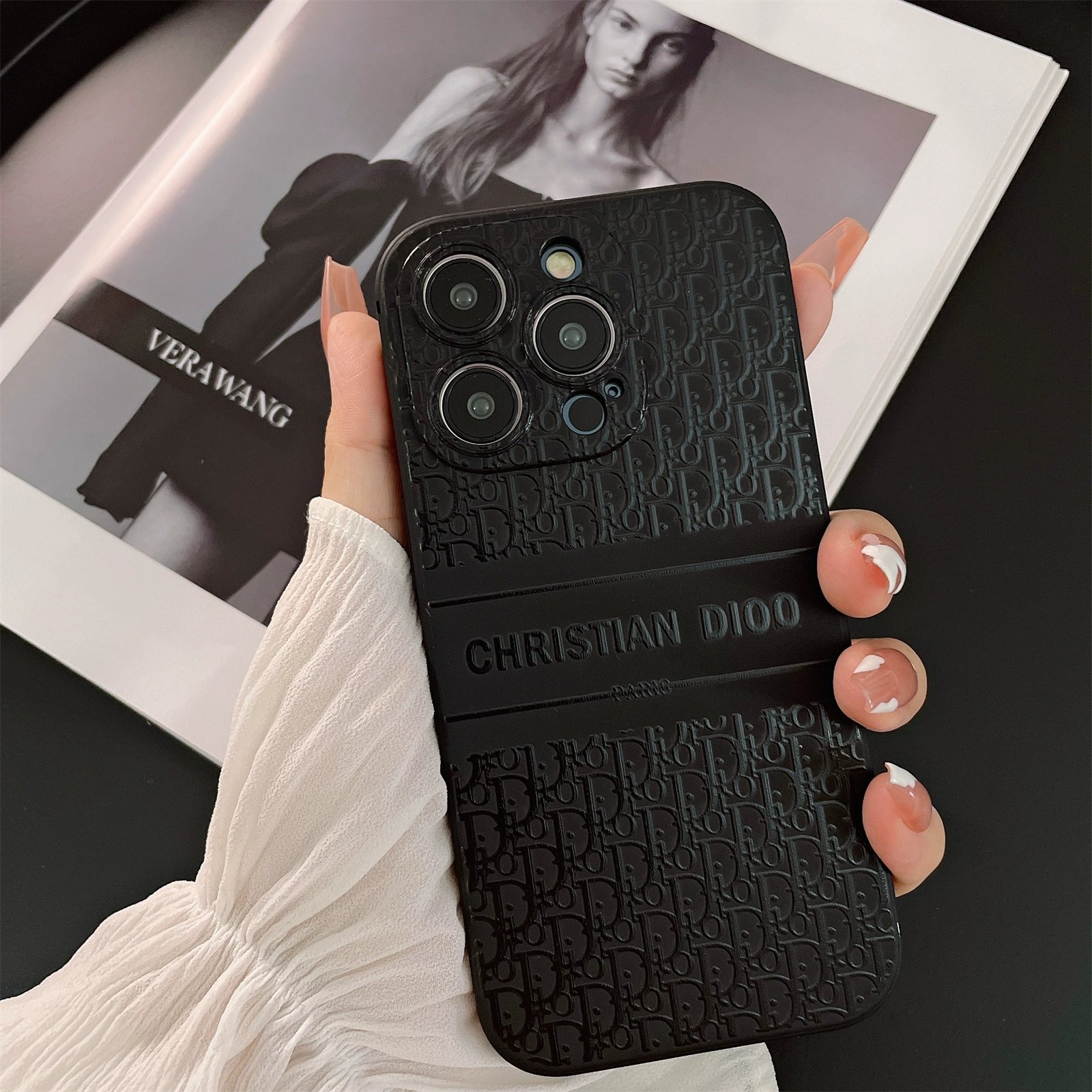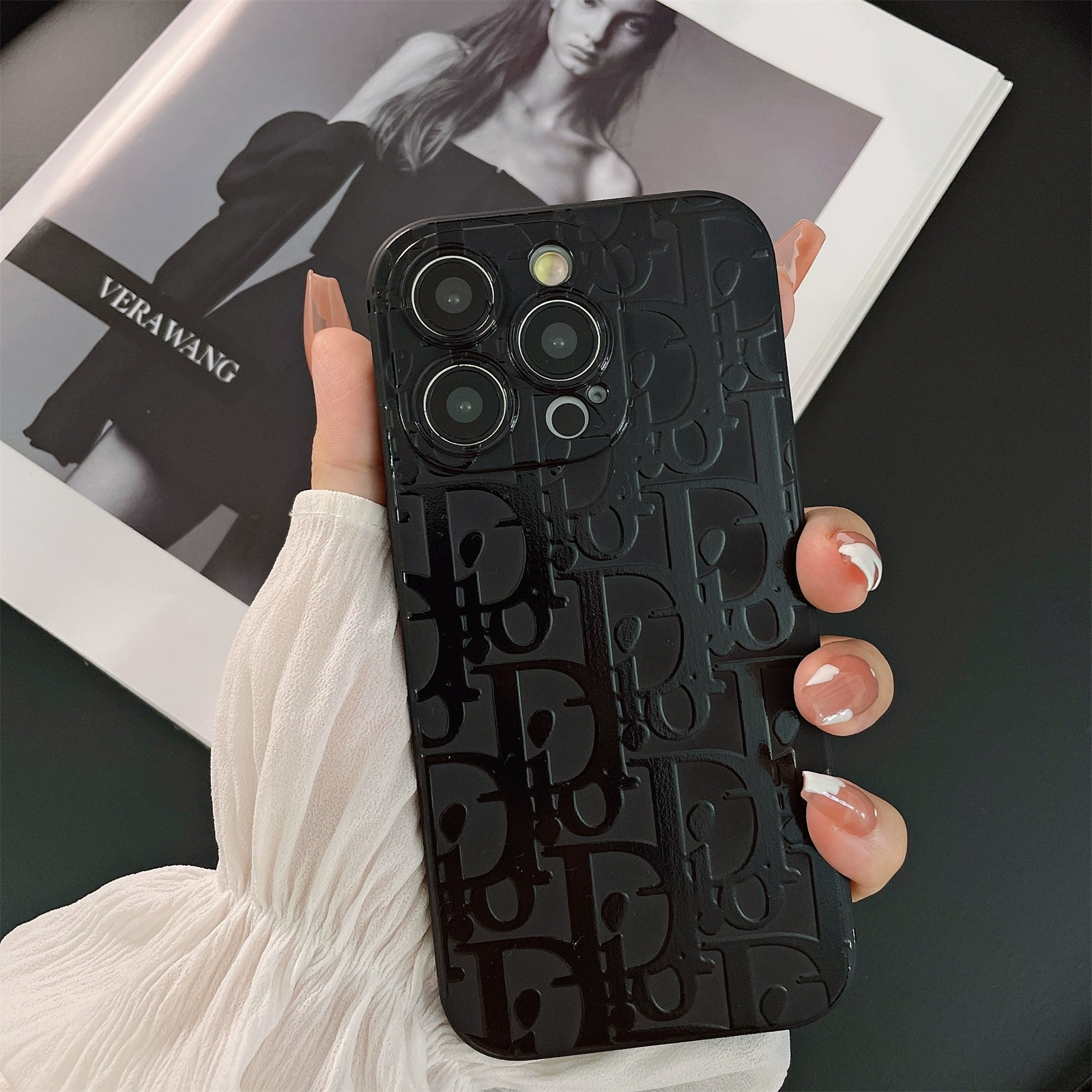 Ou Que's new trendy brand D home letter black matte 15 suitable for Apple 14promax mobile phone case iPhone13 couple 12pro men's and women's 11 all-inclusive xs max silicone xr protective cover soft
