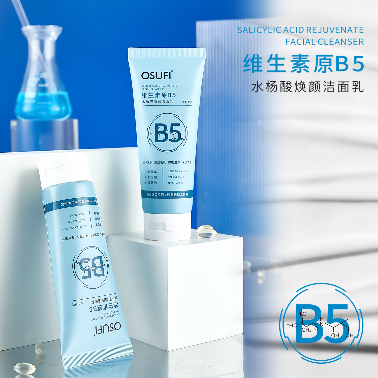 Ou Shu Fei B5 Salicylic Acid Facial Cleanser Shake Sound Explosions Amino Acid Foam Facial Cleanser Cleansing Moisturizing Skin Care