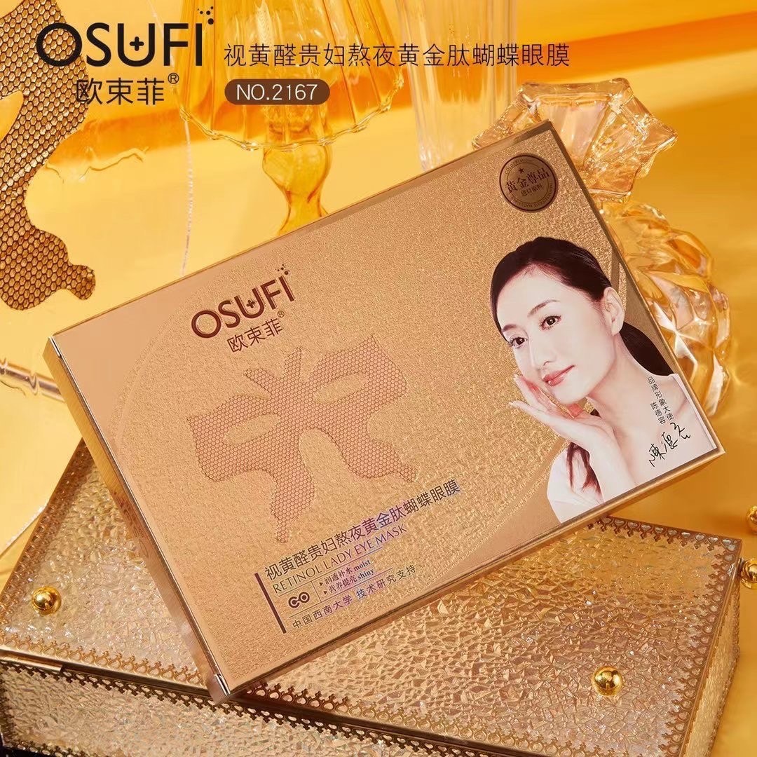 | nameOriginal | Oubanfei eye yellow aldehyde lady staying up late gold peptide butterfly eye mask beauty salon line eye care TikTok Kuaishou |