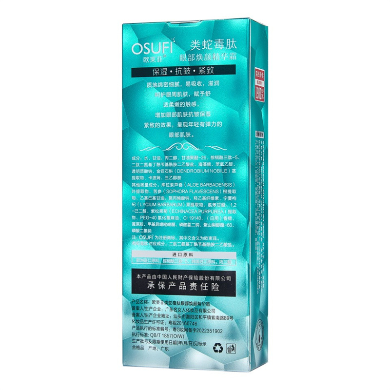 | nameOriginal | Oubanfei snake venom peptide eye essence cream lifting and tightening fade fine lines anti-wrinkle eye cream eye skin care hair generation |