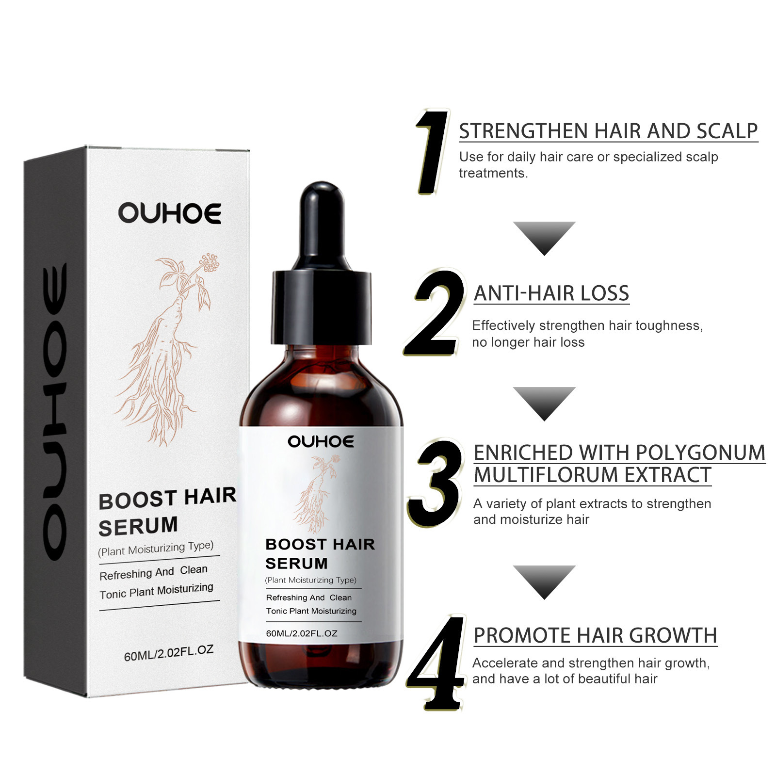 OUHOE plant dense hair liquid herbal essence moisturizing massage scalp thick hair oil control hair care essential oil