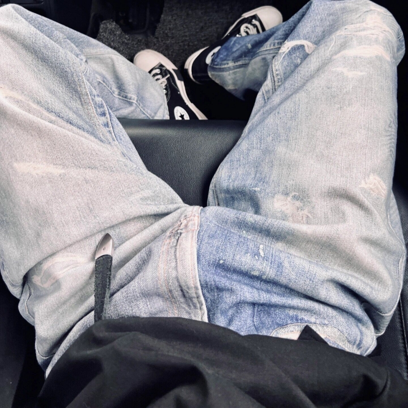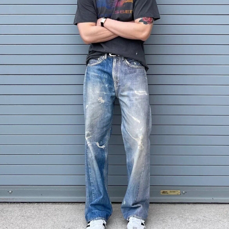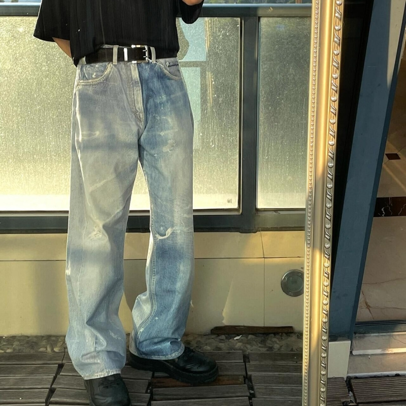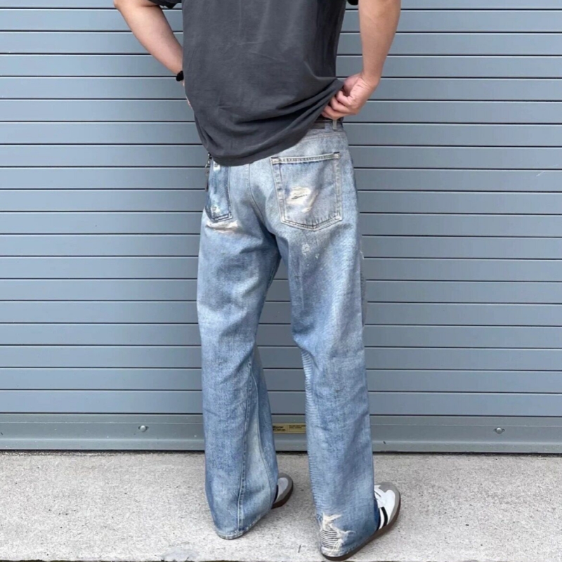 Our Legacy Digital Print Destruction Jeans Cleanfit Washed Loose Casual Straight Trousers for Men and Women