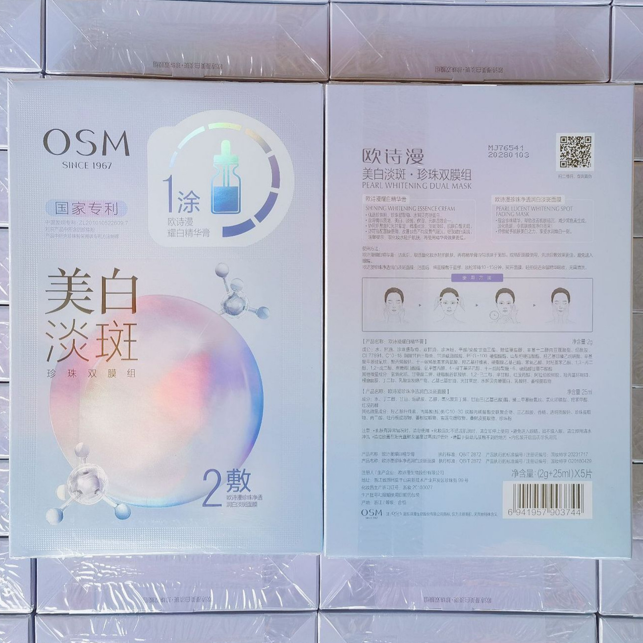 Oushiman Whitening and Spot-Fading Mask Pearl Double Membrane Group Cleansing White Brightening White Essence Cream New Hydrating and Moisturizing