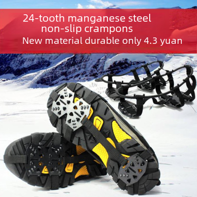 | nameOriginal | Outdoor 24-tooth manganese steel ice claw non-slip shoe cover snow claw mountaineering fishing shoes spikes snow mud ice grab 34-45 yards |