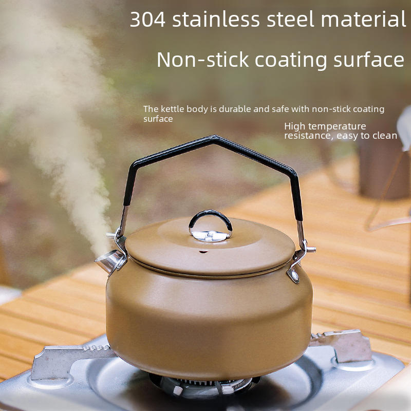 Outdoor 304 stainless steel kettle picnic teapot camping 1L coffee pot with spout portable large capacity kettle