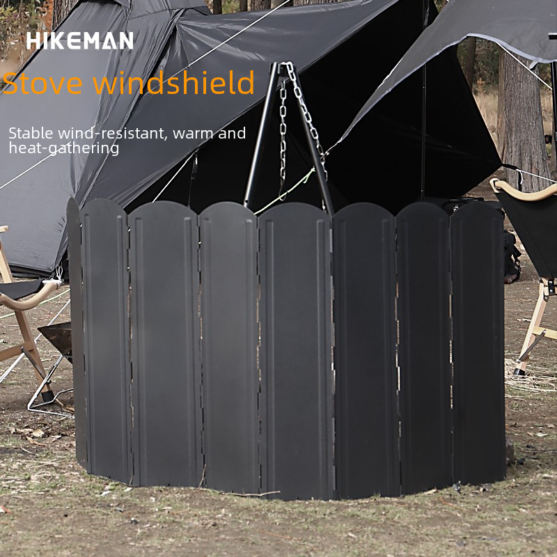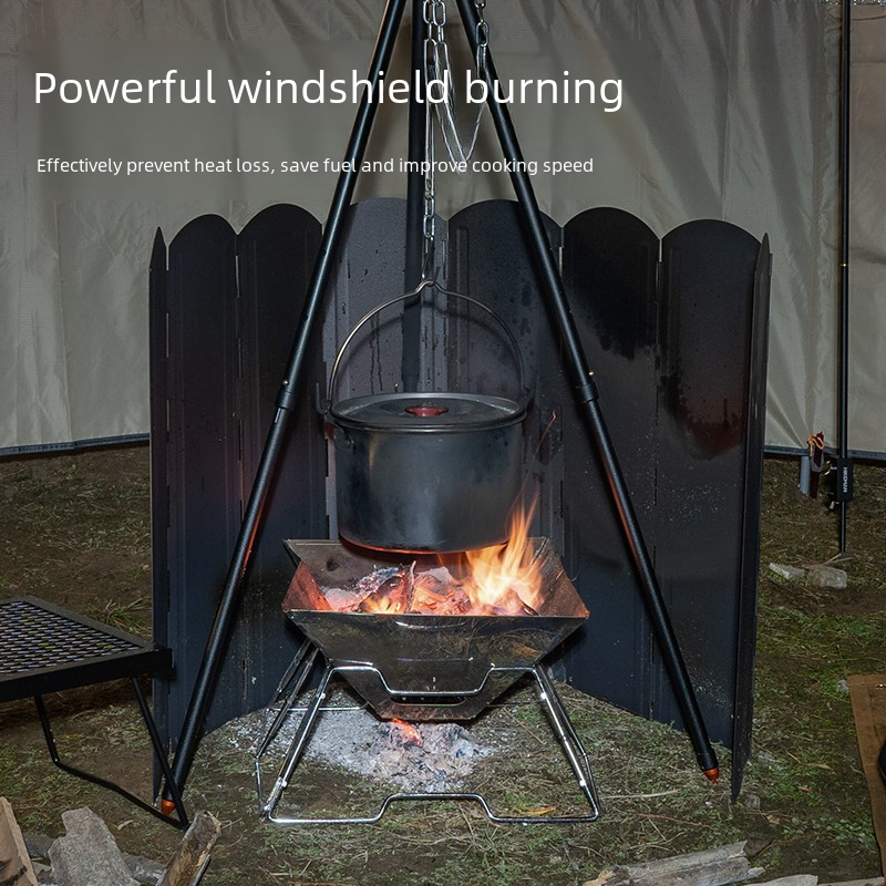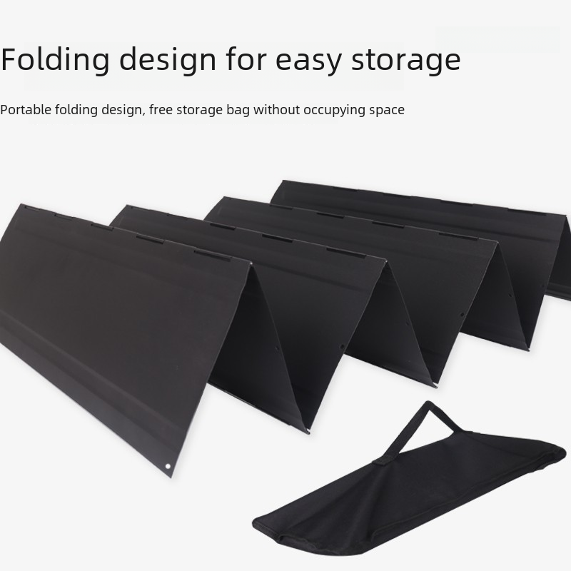 Outdoor Black Large Windshield Camping BBQ Bonfire Stove Foldable Cookware Galvanized Sheet Heat Gathering Windshield