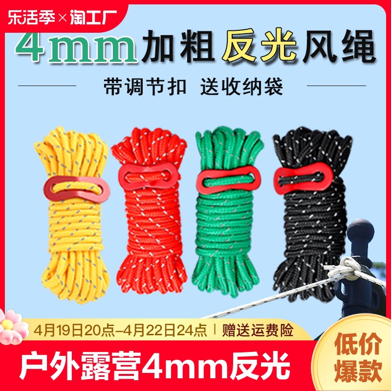 Outdoor Camping 4mm Reflective Tent Windproof Rope Canopy Wind Rope Fixed Pull Rope Thick Accessories Luminous Night
