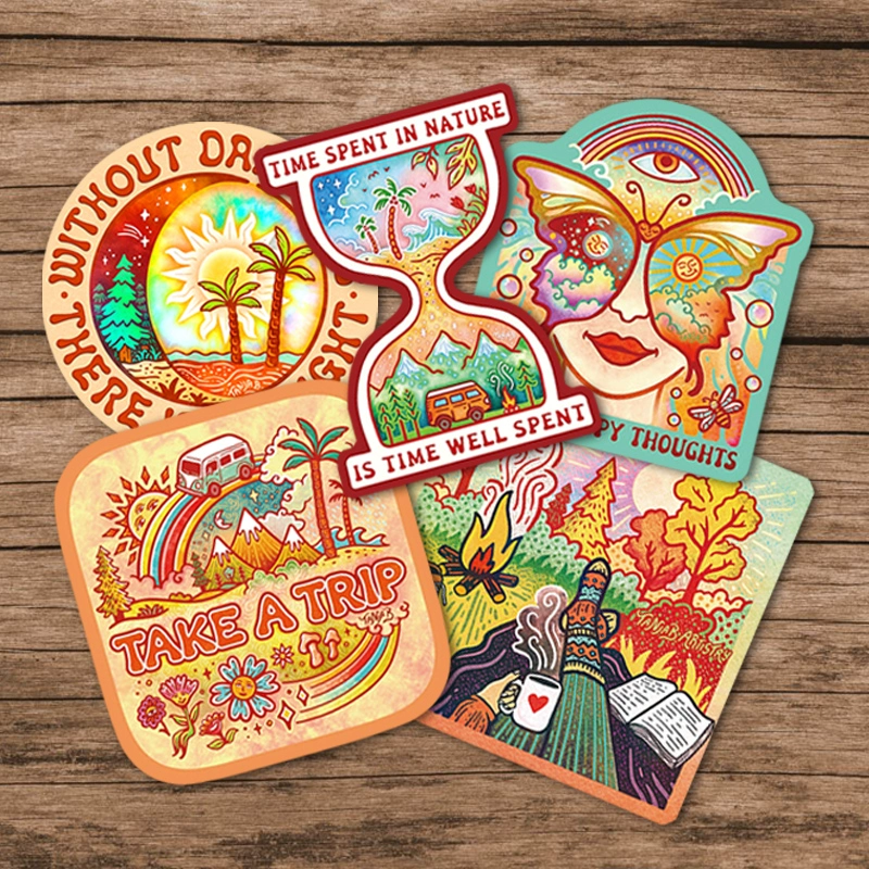 | nameOriginal | Outdoor camping illustration sticker mobile phone case computer ipad creative personalized text decoration small pattern waterproof 3M |