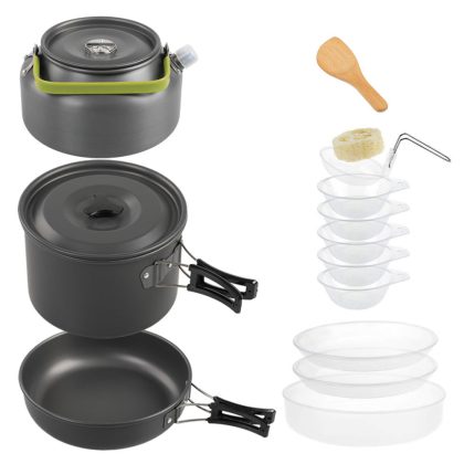 Outdoor camping pot set DS-512 with 1.2L teapot suit plus accessories portable picnic pot set for 4-5 people