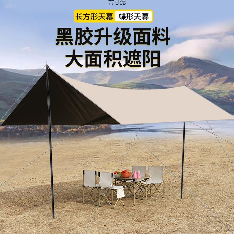 | nameOriginal | Outdoor canopy tent thickened shed sunscreen anti-ultraviolet black rubber camping butterfly canopy factory a wholesale |