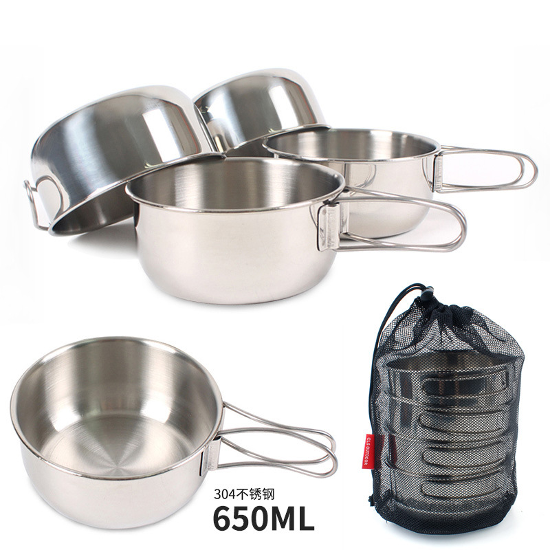 | nameOriginal | Outdoor Folding Set Bowl 304 Stainless Steel Mountaineering Camping 650ml Large 4-piece Set Cup Folding Bowl Combination Tableware |