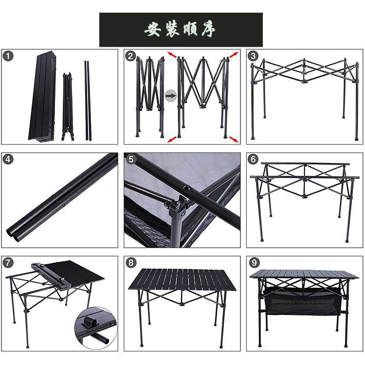 Outdoor Folding Table Self-driving Picnic Barbecue Camping Beach Egg Roll Table Portable Stall Aluminum Alloy Lifting Table