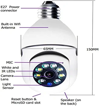 Equipped with both 2.4GHz and 5G WiFi connectivity, this camera ensures a stable and reliable connection, allowing you to monitor your home from anywhere, at any time. The 1080P E27 Light Socket Security Camera captures crystal-clear footage, providing you with a full-color view of your home, day or night.